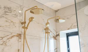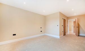Upstairs, the principal suite offers a haven of calm with a modern en-suite bathroom and a spacious walk-in shower. Two further double bedrooms are beautifully proportioned and complemented by a stylish family bathroom, complete with a large bath and walk-in shower. An additional room provides flexibility as a dressing room or storage space.