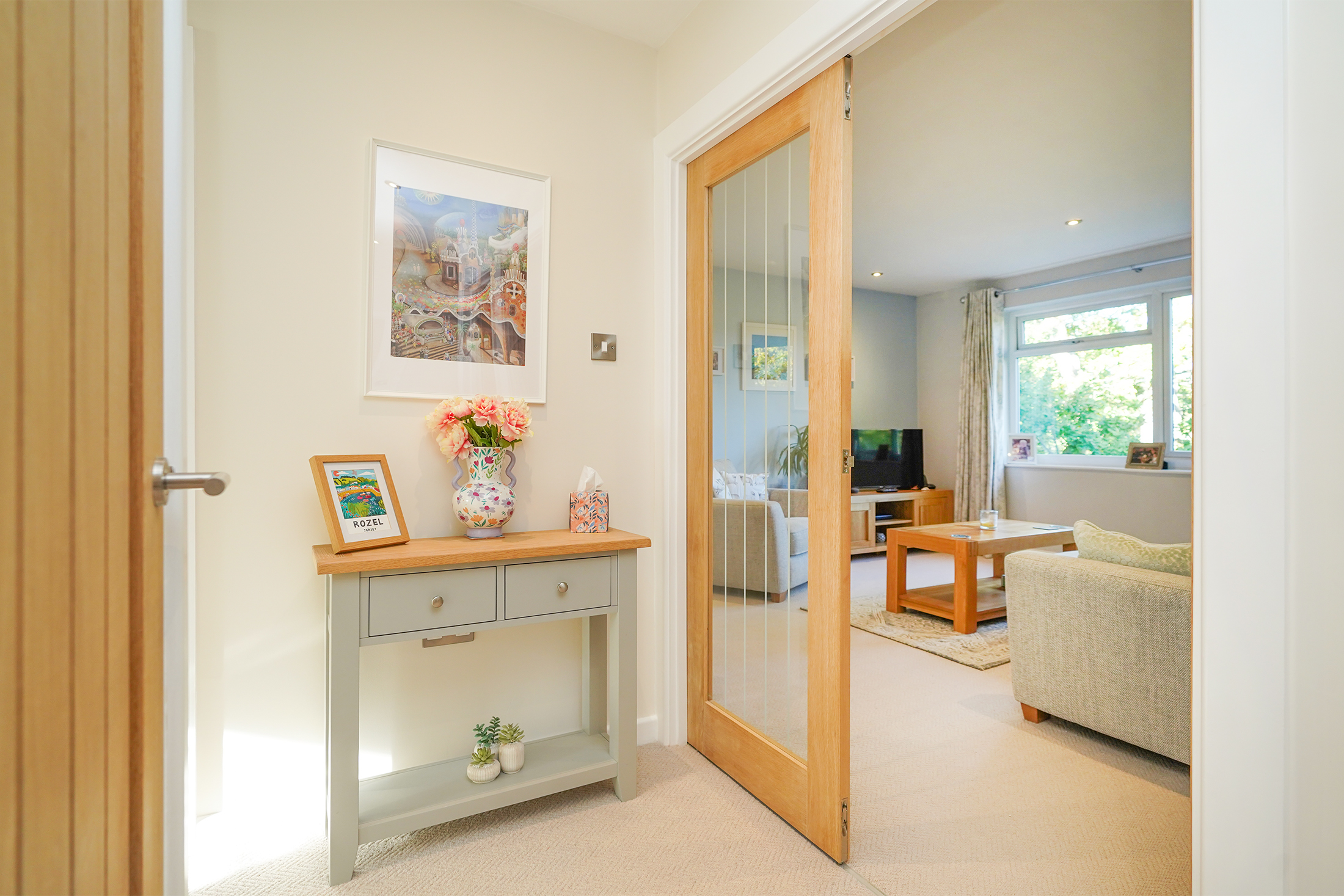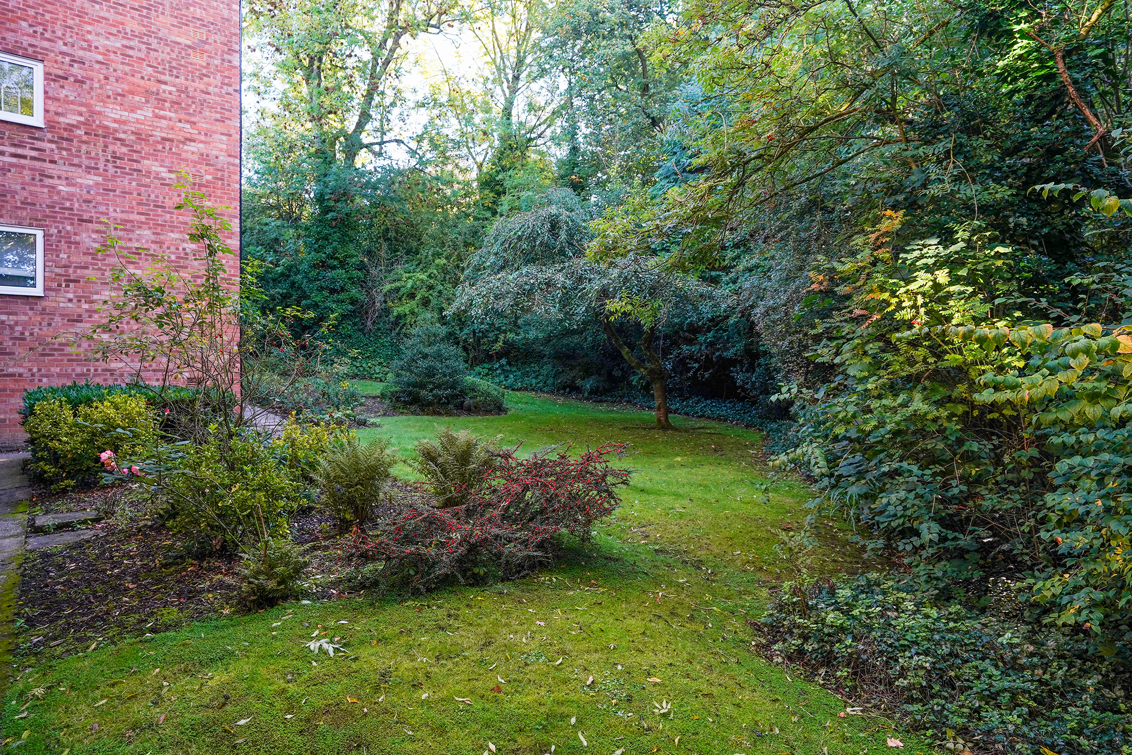 To the rear are communal gardens protected by mature trees, and the property also benefits from a single garage. Visitor parking is also available.
