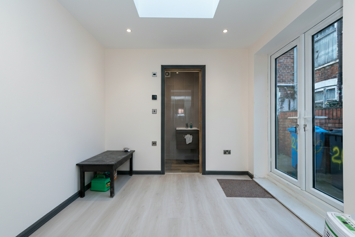 With laminate flooring, roof lantern, access to W/C, and french doors to the rear courtyard.