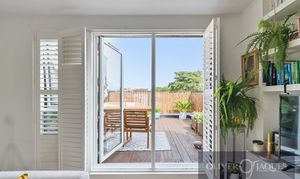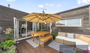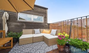 The bedroom boasts ample room for relaxation, while the living area provides a cosy spot for unwinding after a long day. The kitchen, though compact, is a decent size and also offers small dining space. The large windows and patio doors which lead onto the private roof terrace offer an abundance of light to the rooms throughout, enhancing the sense of space and tranquillity.