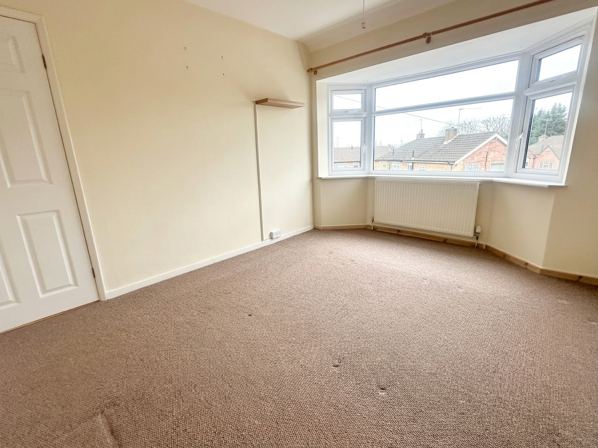 Carpet flooring, radiator and a UPVC double glazed window.