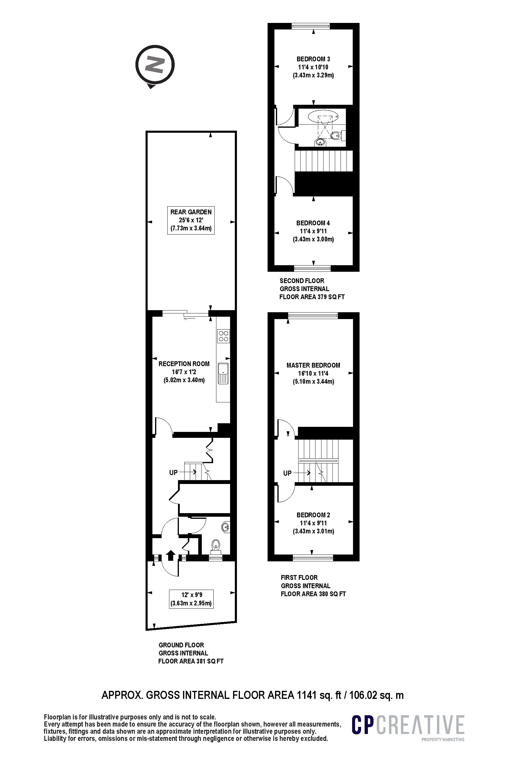 - Spread across three floors (approx. 1141 SQFT)