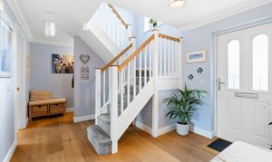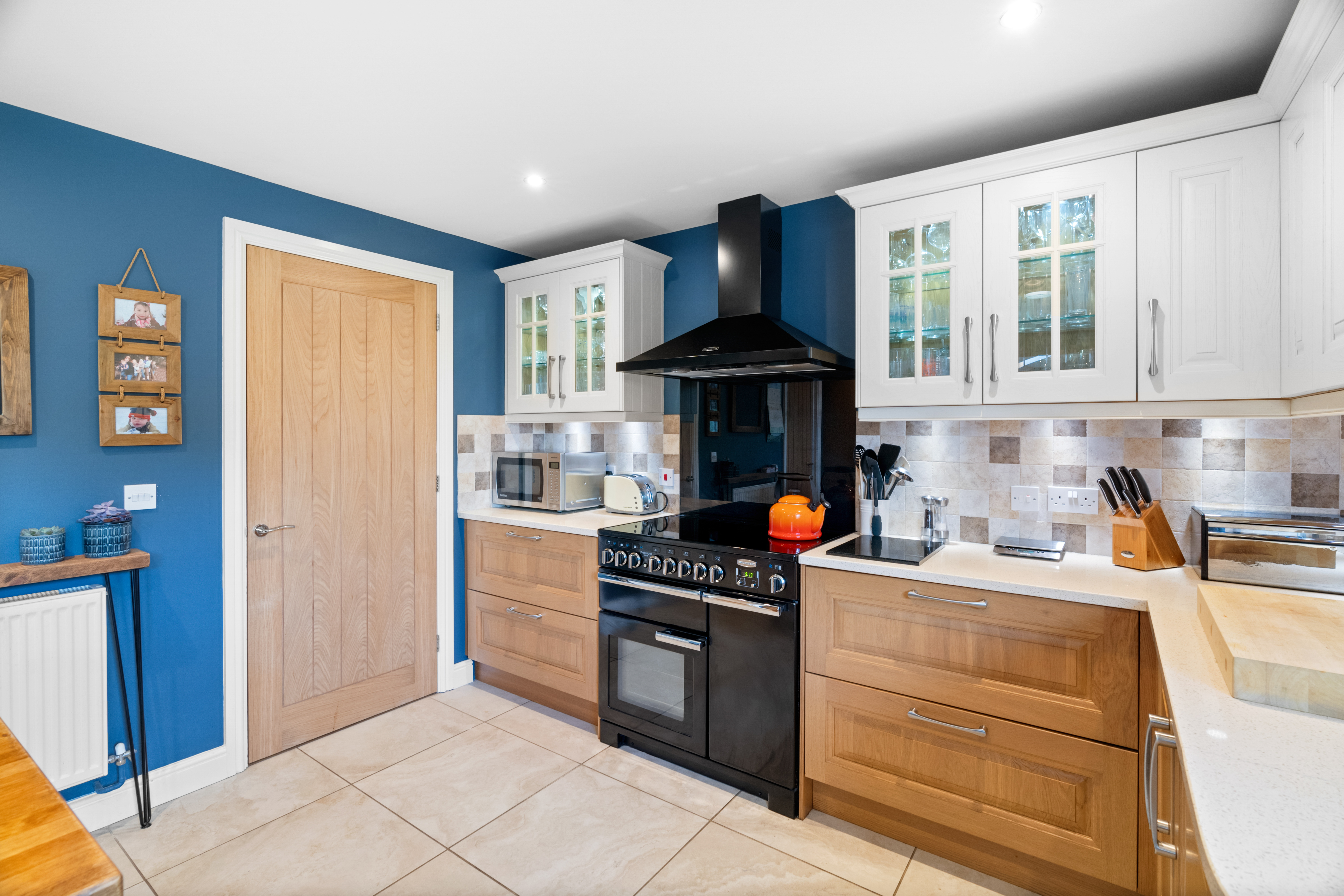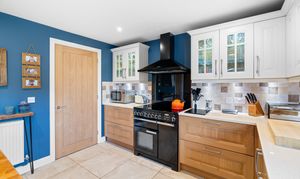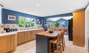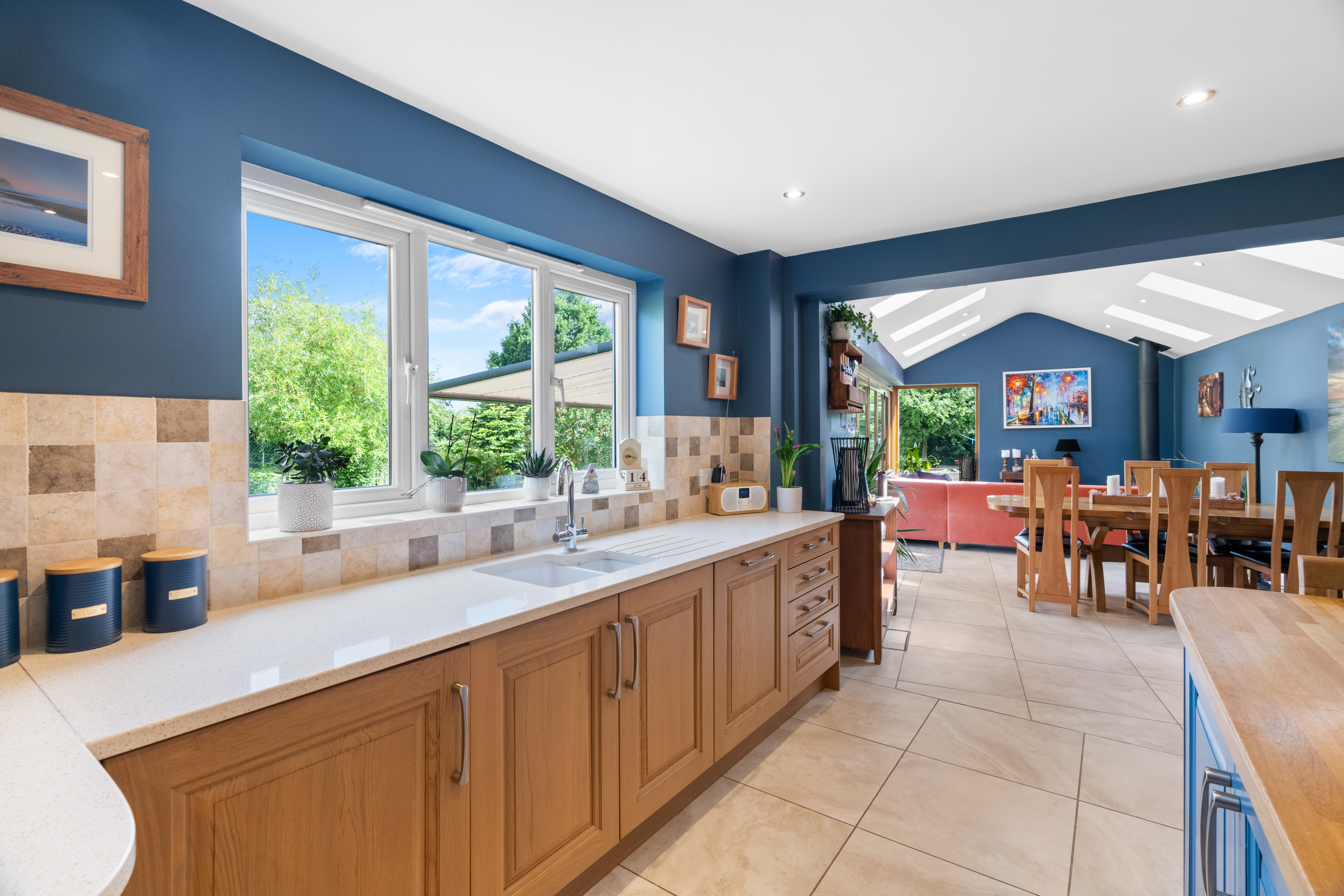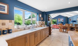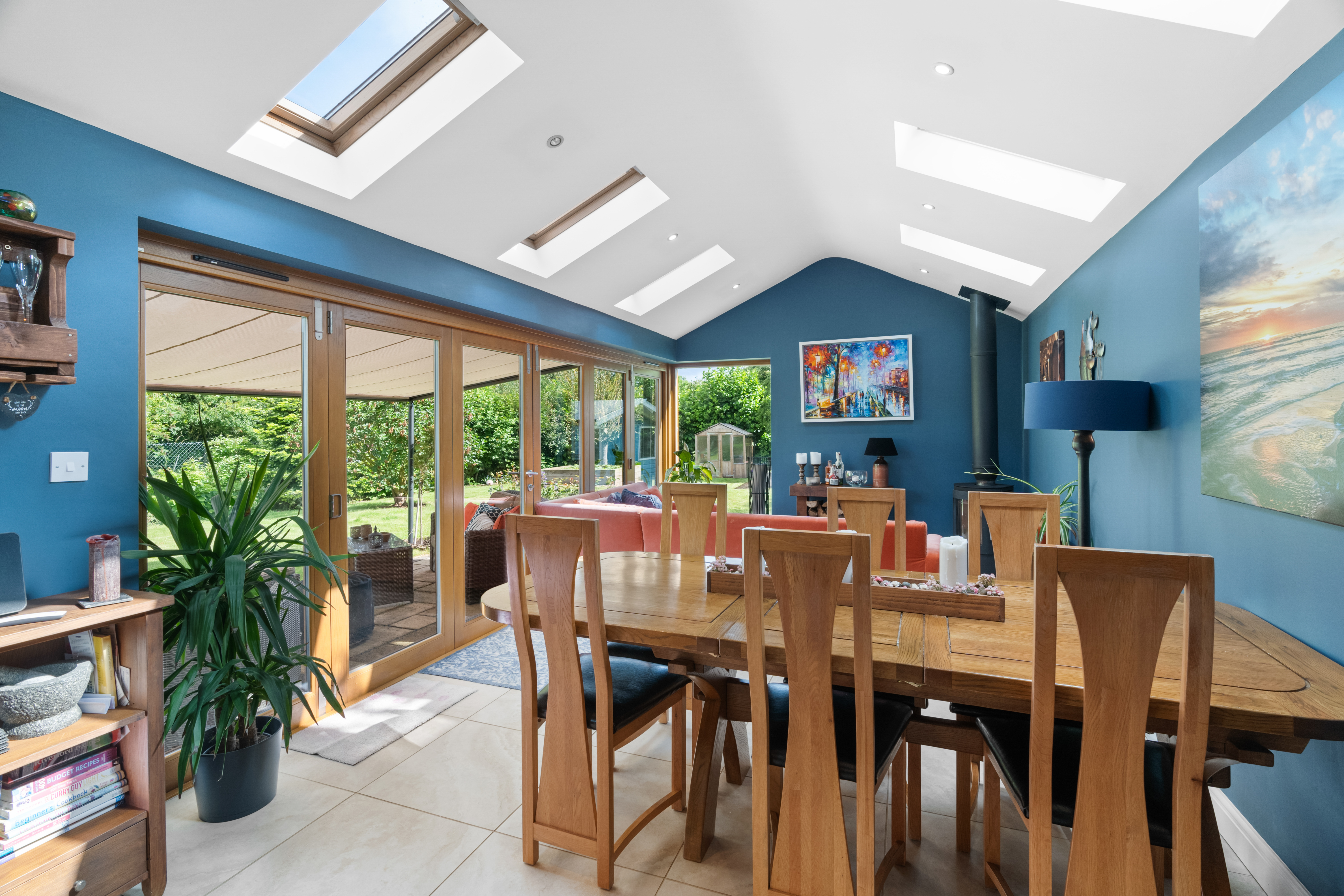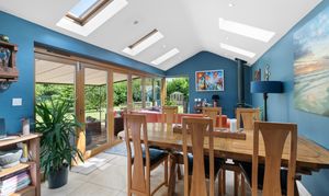 The impressive entrance hall has an oak staircase and oak internal doors and an under-stairs storage cupboard, and a ground-floor WC. The current vendors have extended the property to offer a wonderful open-plan kitchen/dining/family room with a log-burning stove and bi-fold doors opening to the extensive garden. Range of fully fitted wall and base units with Quartz worksurface over and tiled splash back. Inset ceramic sink unit with mixer tap, integrated dishwasher, Rangemaster Professional Deluxe with two ovens, grill and induction hob, extractor hood over and granite splash back, porcelain tiled floor. Open plan to the dining area and sitting room, with Velux windows and bi-fold doors leading to the rear garden, log burning stove, underfloor heating, a continuation of porcelain tiled floor. A separate utility room leads to the garden and comprises a range of fitted wall and base units, worksurface over and tiled splash back. Stainless steel sink unit with mixer tap, plumbing for washing machine, space for tumble dryer, wall-mounted gas boiler, tiled floor. There are two further reception rooms; one is currently used as a snug/home office and the next a family room or as another option, it could be a ground floor bedroom with the ground floor WC along side. The comfortable living room has French doors to the garden, an electric fire with a granite hearth and timber surround, and solid oak flooring, and the study completes this versatile and well-planned interior.