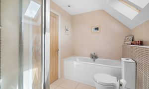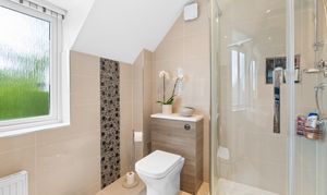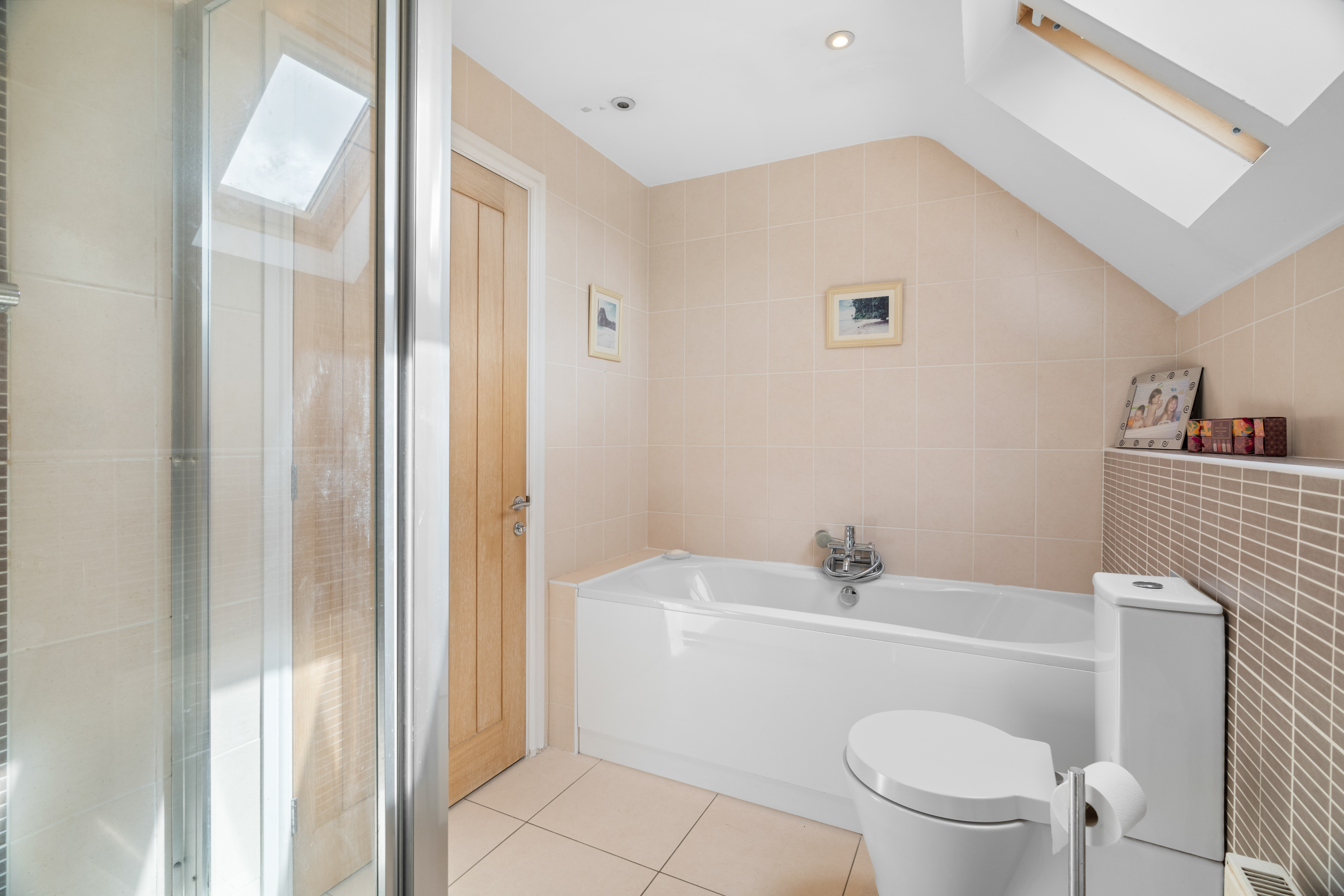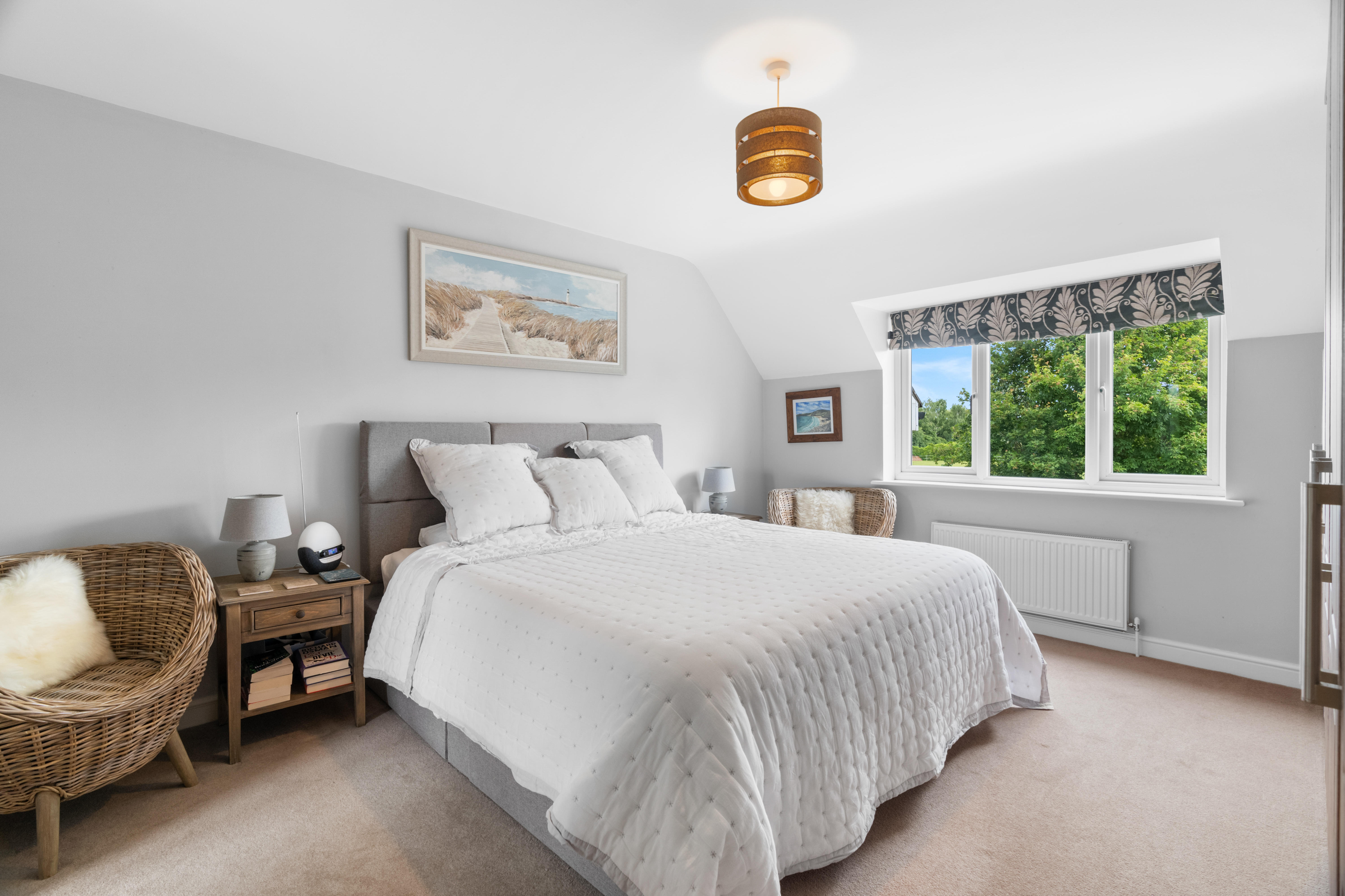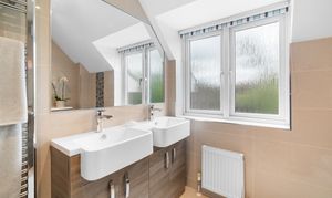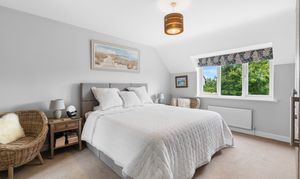 The light and spacious galleried landing provides access to all first-floor accommodation, comprising a generous master bedroom which is fitted with a range of full height wardrobes with drawers, shelving and hanging and an en suite shower room with three piece suite comprising w.c, twin hand basins inset to vanity unit, corner tiled shower cubicle, tiled floor. The family bathroom has two velux windows to front, four-piece suite comprising w.c, hand basin, bath with shower attachment over, tiled double corner shower cubicle, tiled floor. There are four further bedrooms, three generous double and a fifth used as a music room, but equally could serve to be the fifth bedroom.