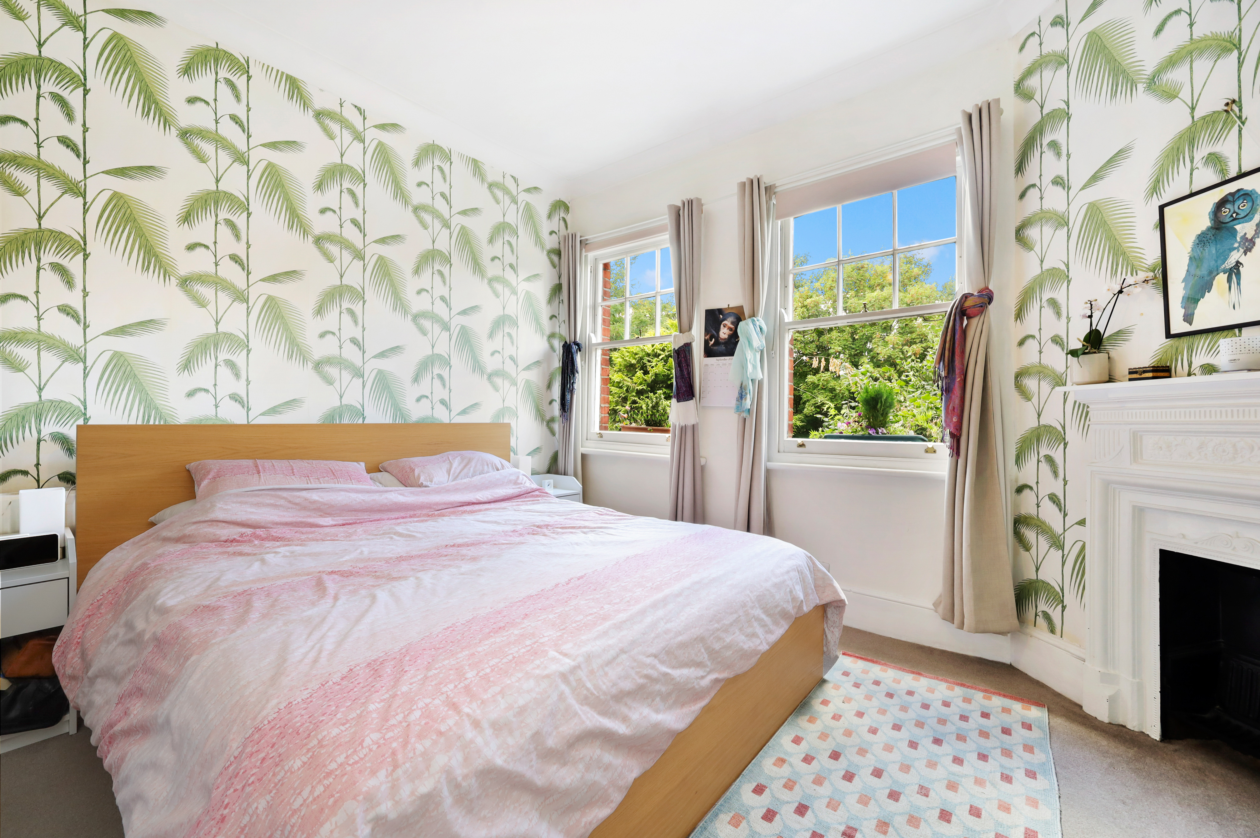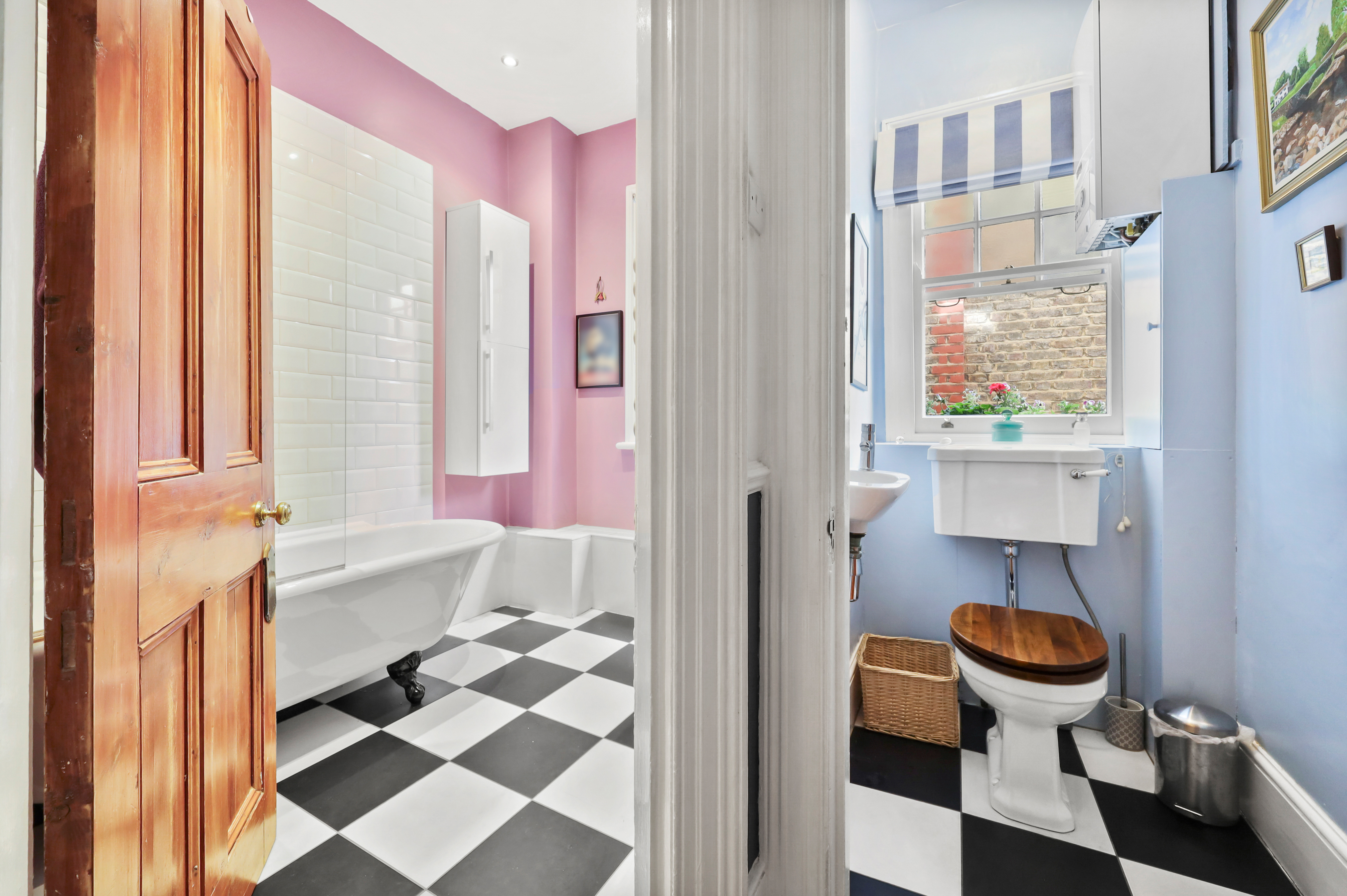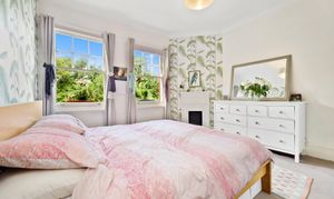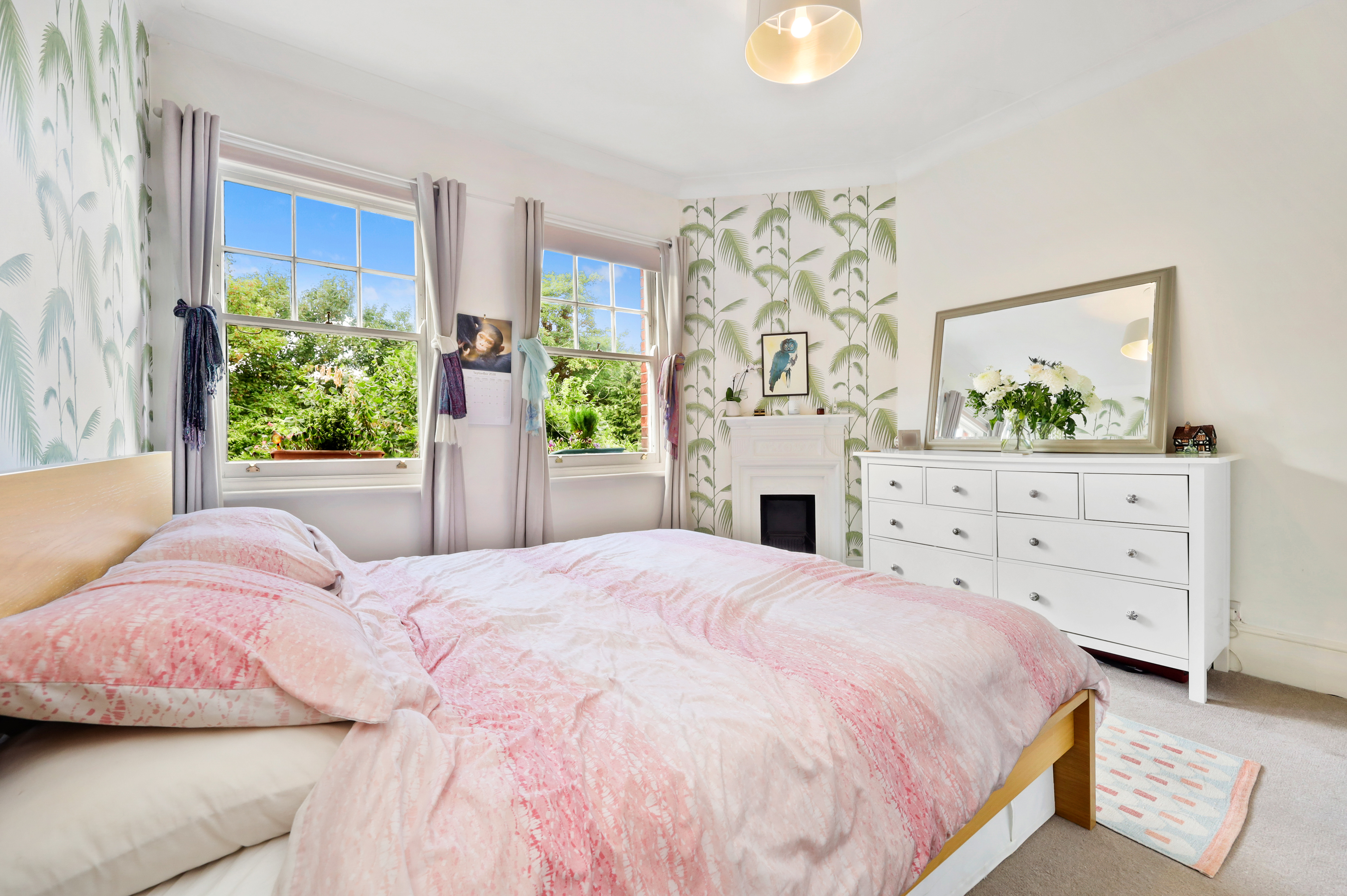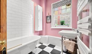 There are two well-proportioned double bedrooms, both with attractive original fireplaces. The bathroom is stylishly appointed with a part free-standing roll-top bath, cabinetry and metro tiling, and there is also a separate WC.
