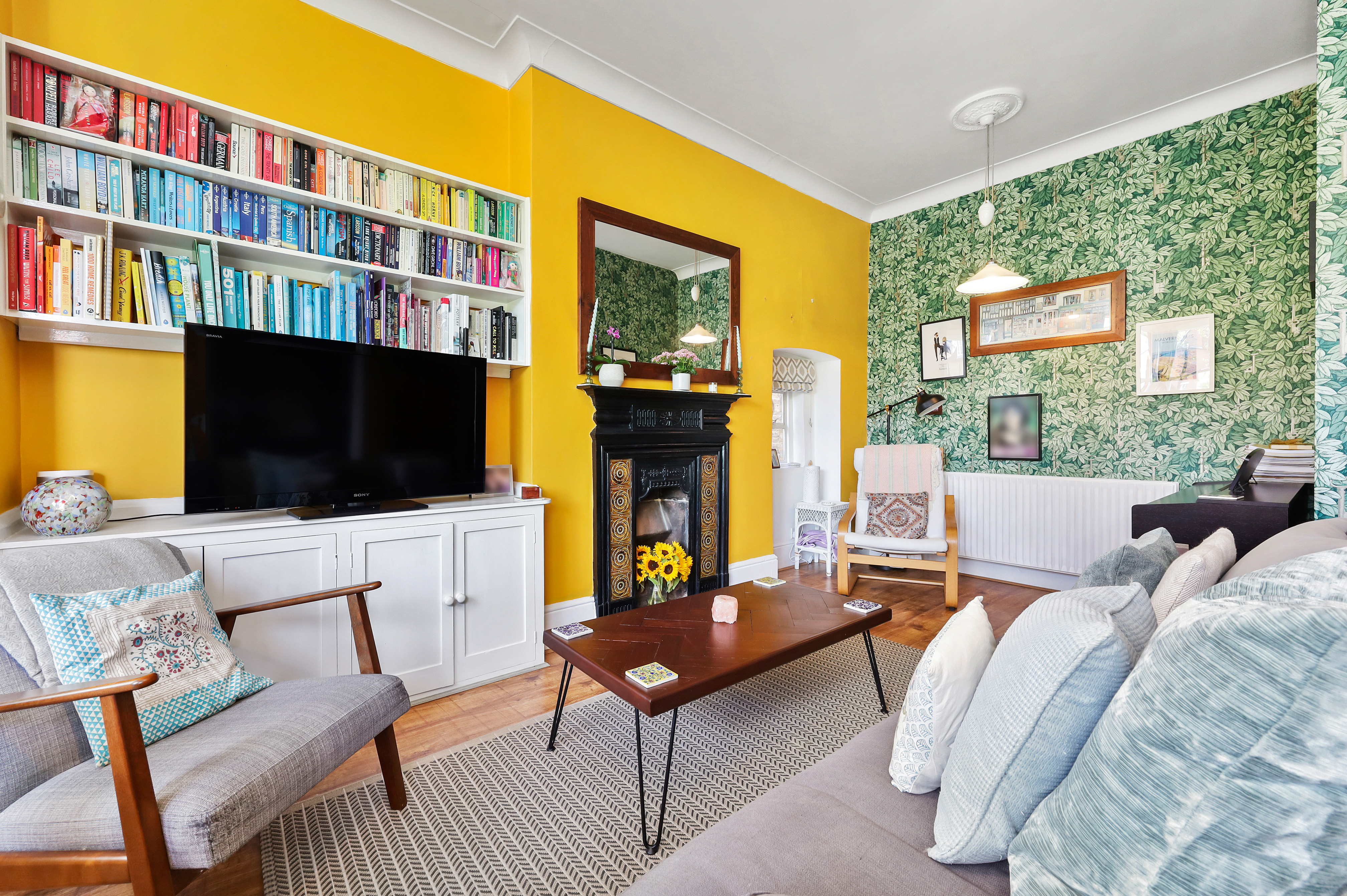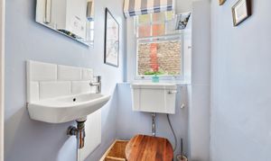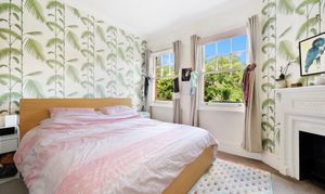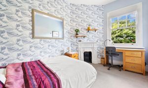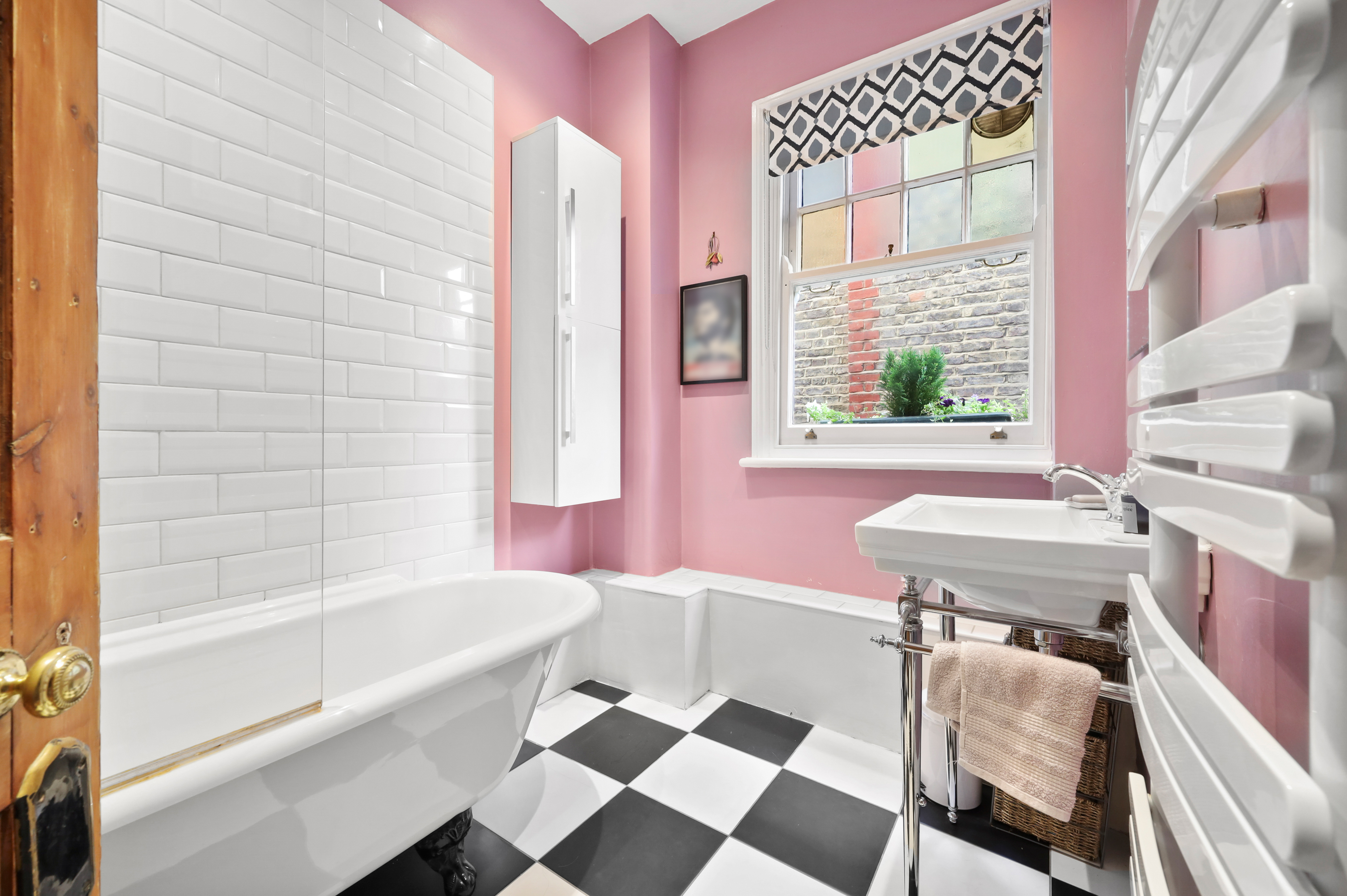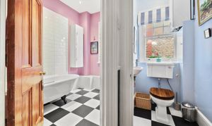 There are two well-proportioned double bedrooms, both with attractive original fireplaces. The bathroom is stylishly appointed with a part free-standing roll-top bath, cabinetry and metro tiling, and there is also a separate WC.