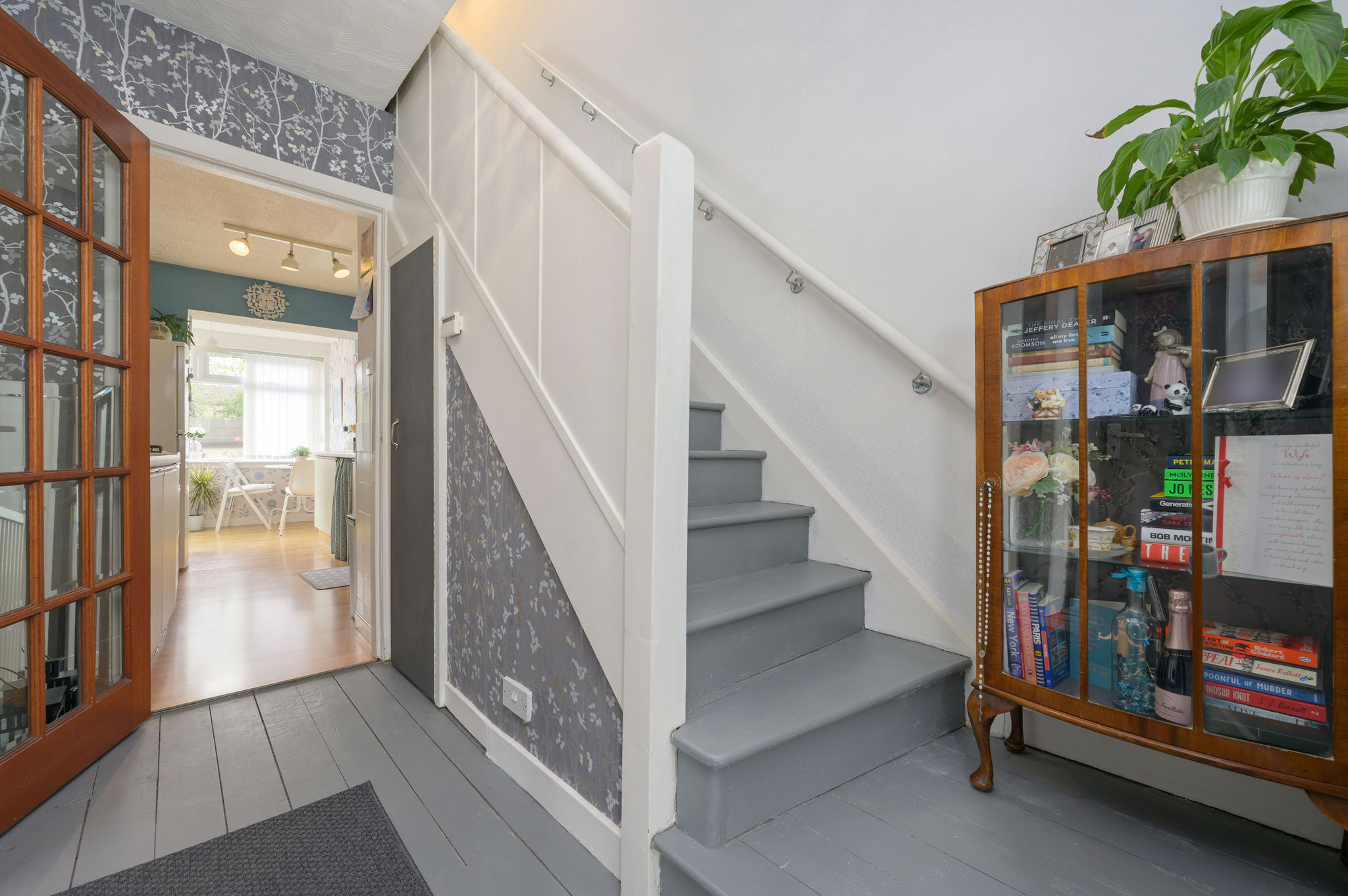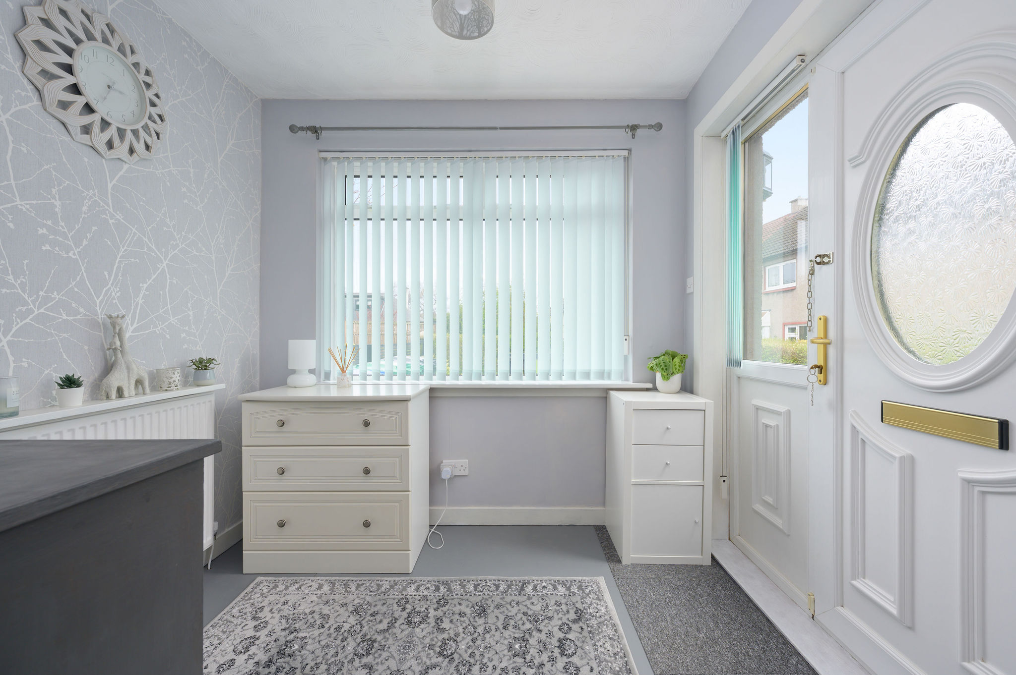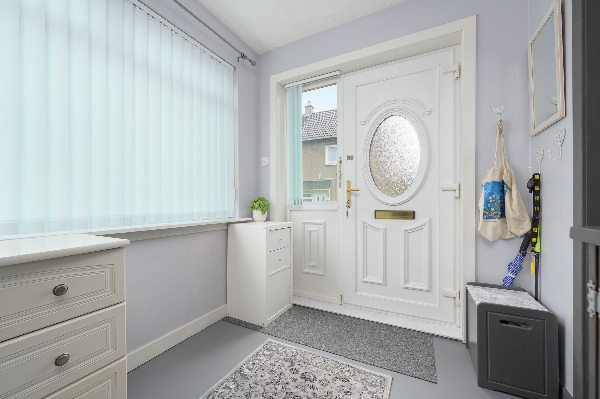 An excellent opportunity to purchase this Extended Two Bedroom End Terraced House which is located in a popular residential location within the City of Dunfermline. The property would make an ideal first-time purchase or may suit someone looking to downsize. The ground floor comprises entrance porch, welcoming reception hallway with a cupboard, spacious lounge allowing ample space for free standing furniture and a kitchen which has an inset gas hob, built-in oven, plumbing for a washing machine and space for a free-standing fridge freezer. The ground floor also has a rear porch which allows space for a dining table and has a door allowing access to the rear garden grounds.