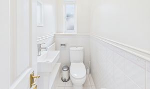Located next to the family bathroom, the WC is part tiled, neutrally decorated and offers a WC and basin.