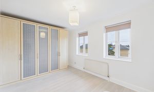 Located on the second floor, this generous primary bedroom offers views over the quiet cul-de-sac out front, fitted wardrobes and a modern en-suite shower room.