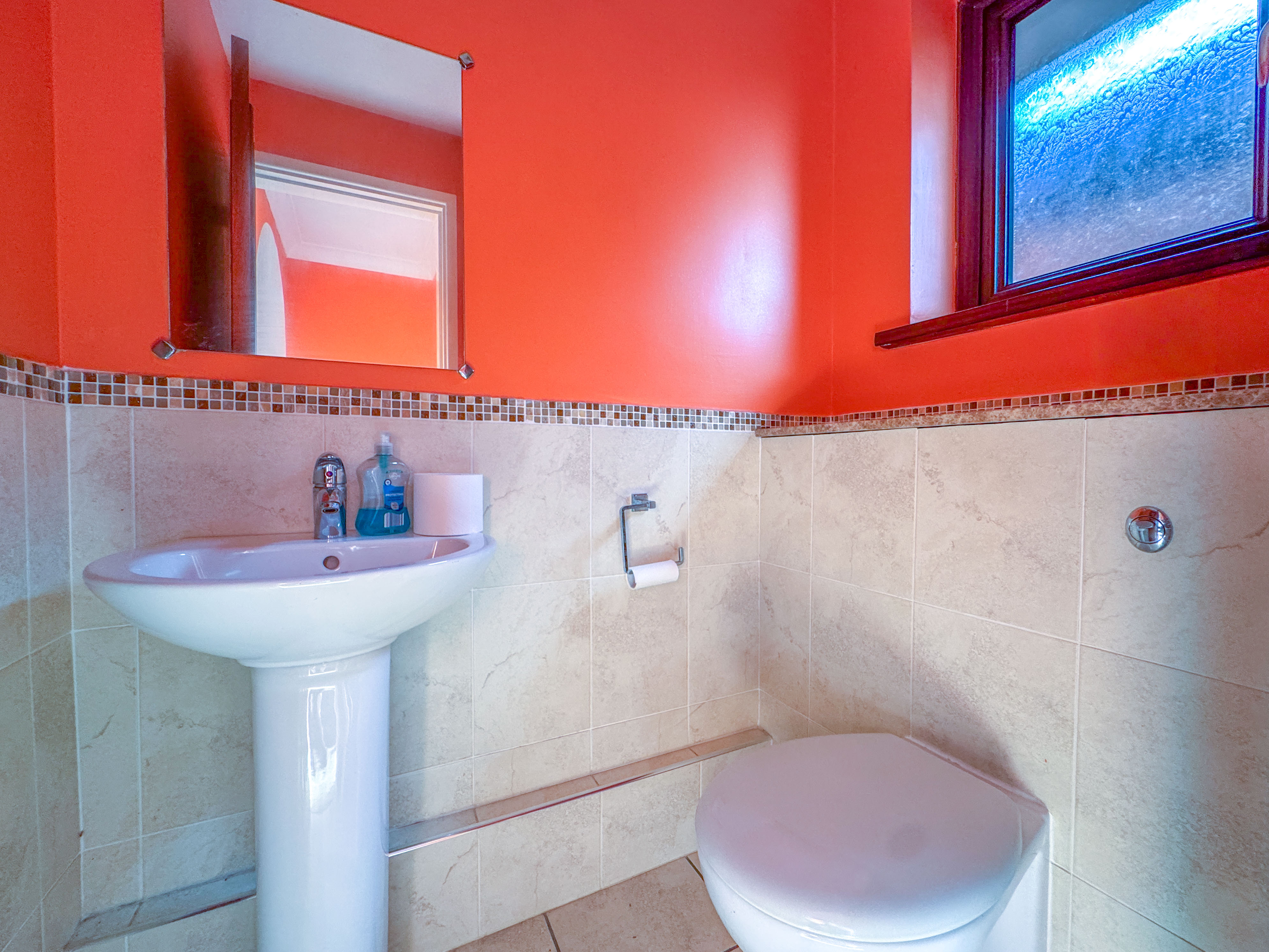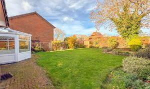 The rear garden is mainly laid to lawn, with a block-paved patio area perfect for outdoor dining, complemented by established trees, mature shrubs, and colourful borders offering a high degree of privacy.
