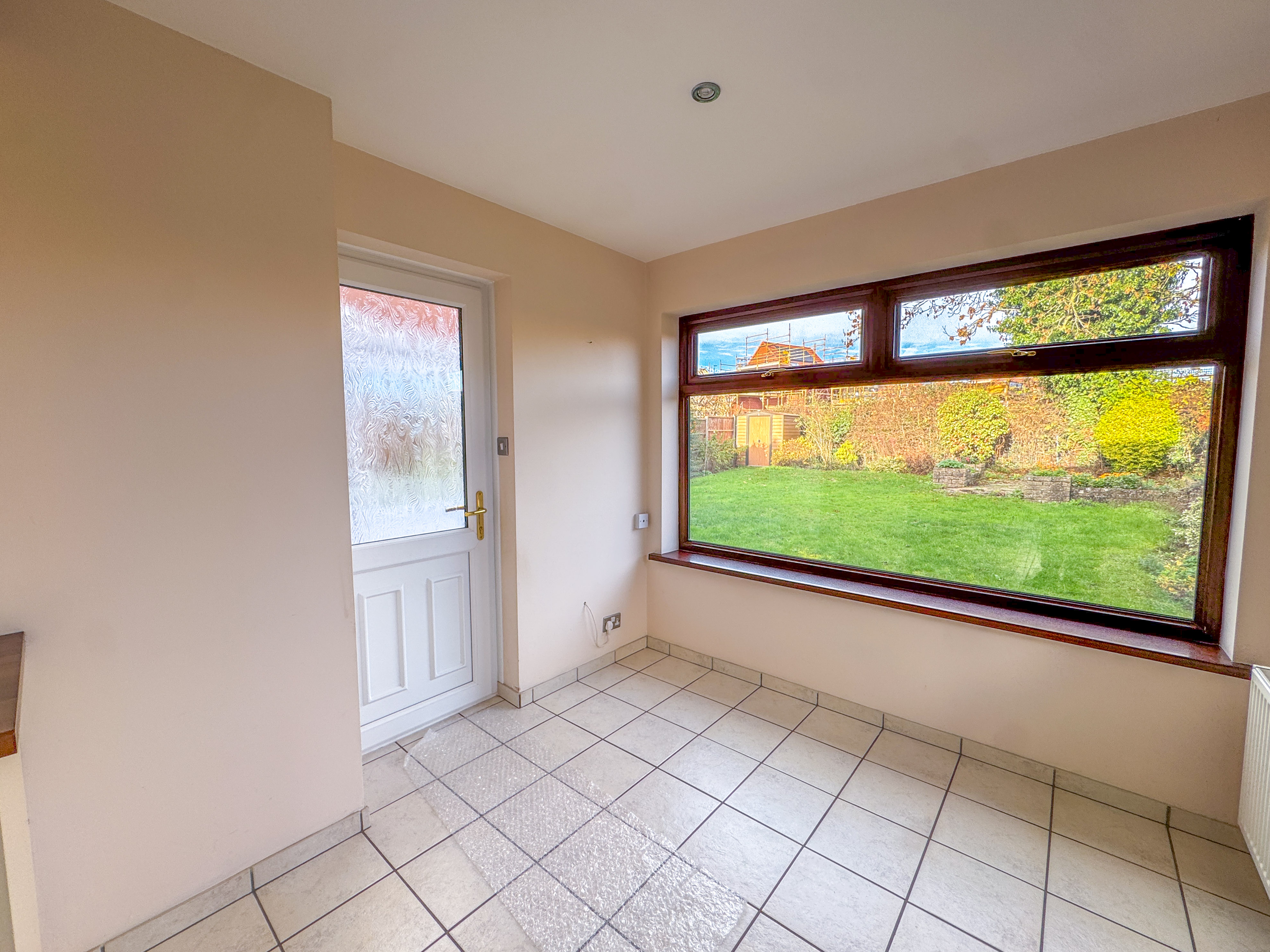 The ground floor accommodation begins with a welcoming entrance hallway leading to a dual-aspect living room, filled with natural light via a bay window to the front and enjoying a feature fireplace with electric fire—ideal for cosy evenings in. An open-plan layout flows through to the dining room, creating a sociable and adaptable space for everyday living or entertaining. From here, sliding doors open into a modern UPVC conservatory, approximately 12 months old, which provides a bright and tranquil space to enjoy garden views all year round.