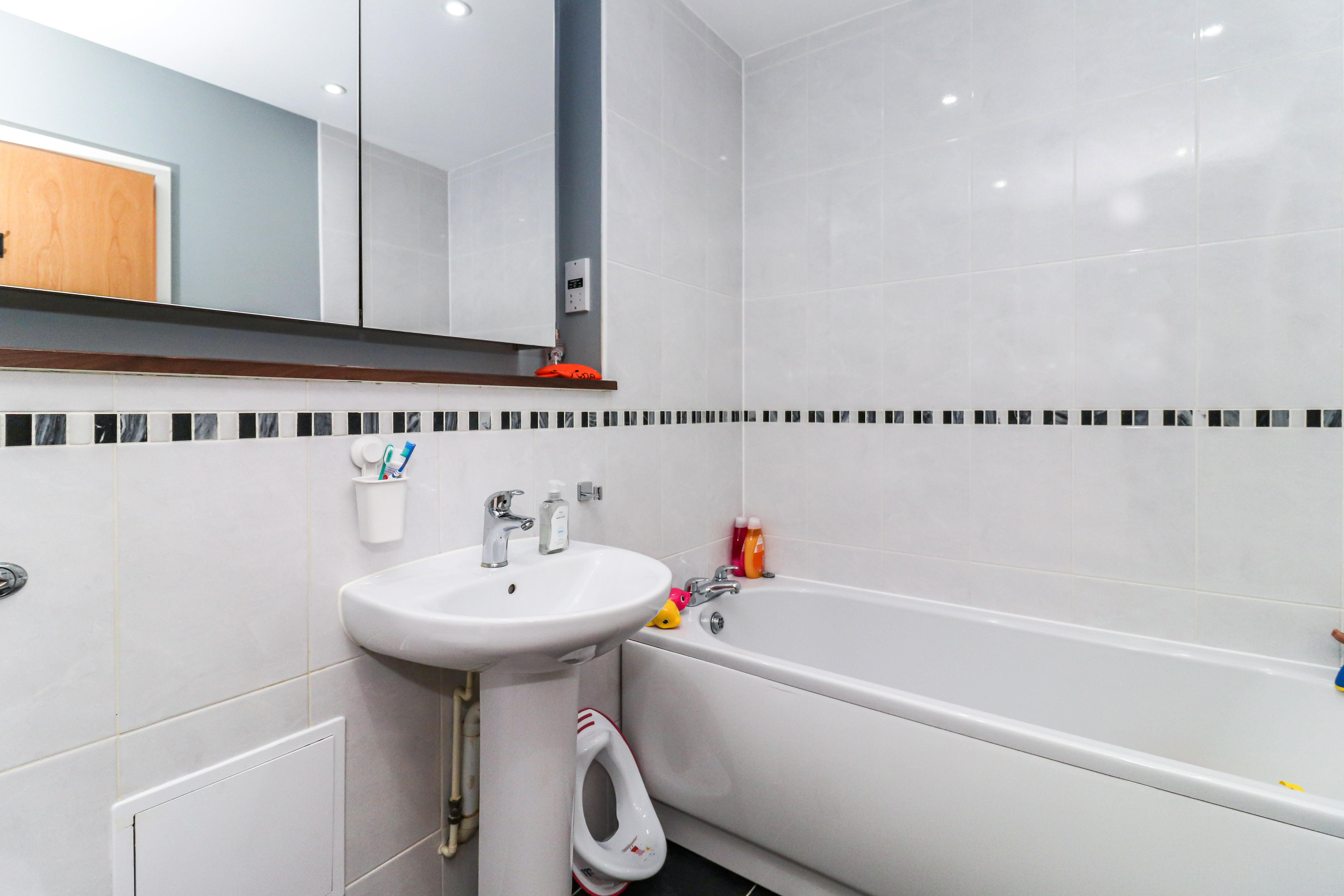Outside, the rear garden has been thoughtfully designed for low-maintenance enjoyment, with a large patio ideal for seating and entertaining, leading to a level lawn bordered by modern fencing. To the front, the property benefits from its own driveway in addition to an allocated parking space close by.