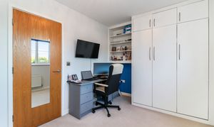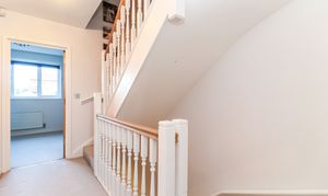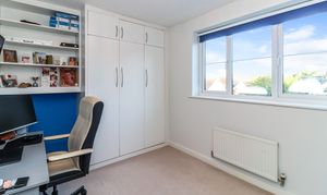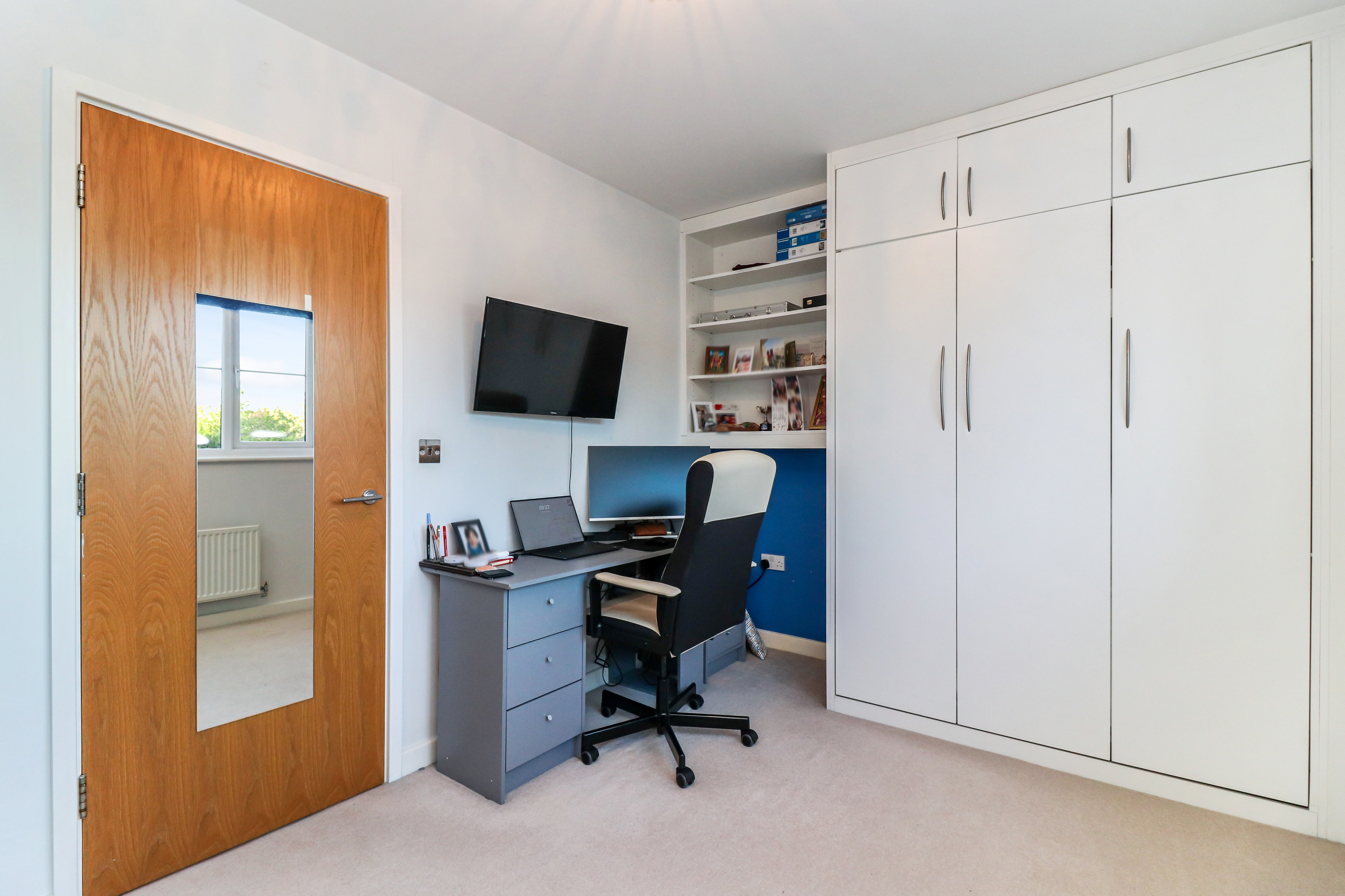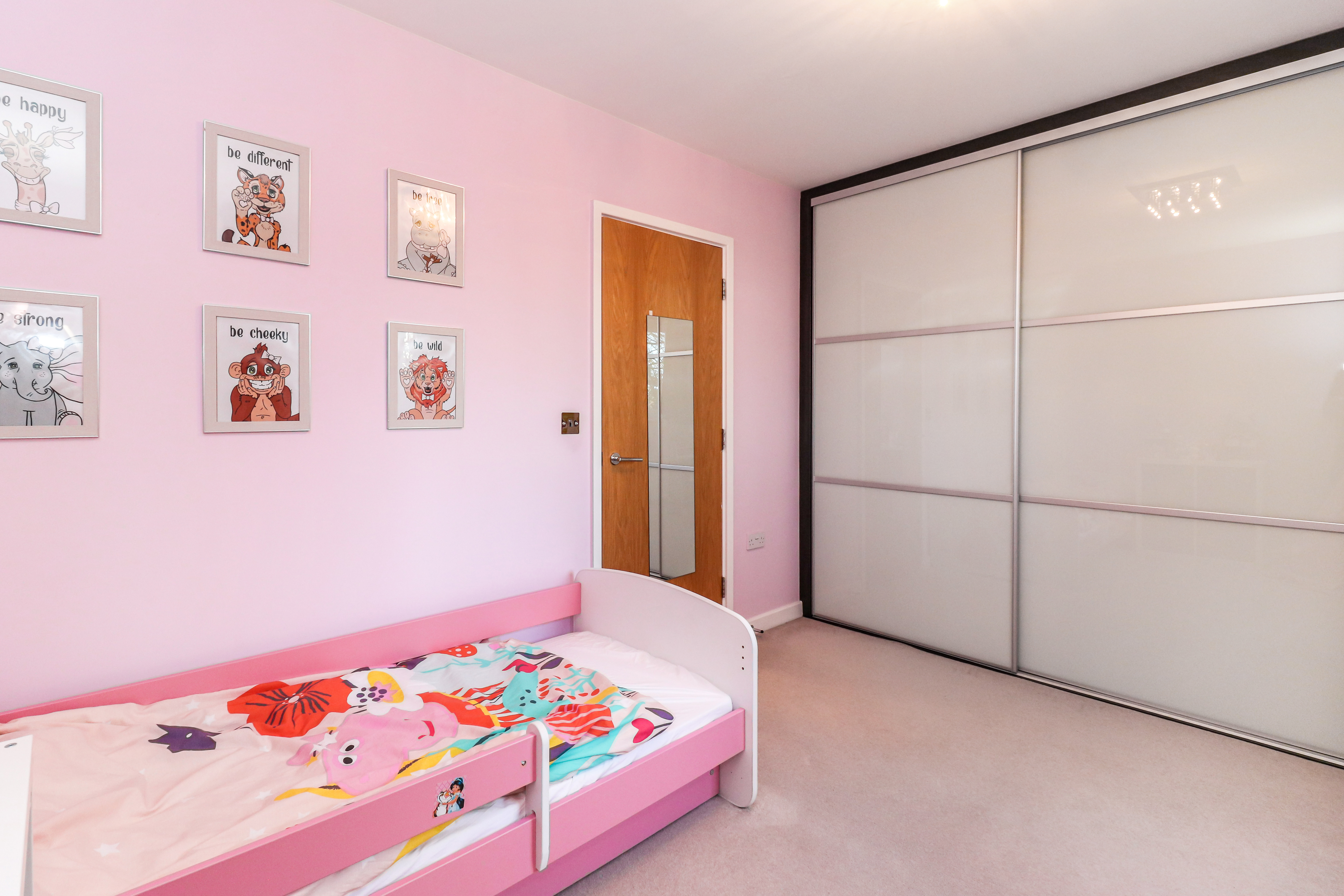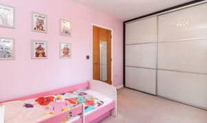 The first floor offers two well-proportioned double bedrooms, both with fitted wardrobes, along with a spacious family bathroom finished to a high standard and including a separate walk-in shower. Occupying the entire top floor, the principal bedroom provides a peaceful retreat, complete with fitted wardrobes, generous floor space and a private en-suite shower room.