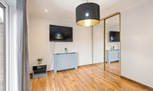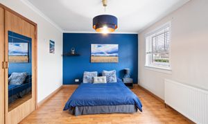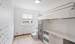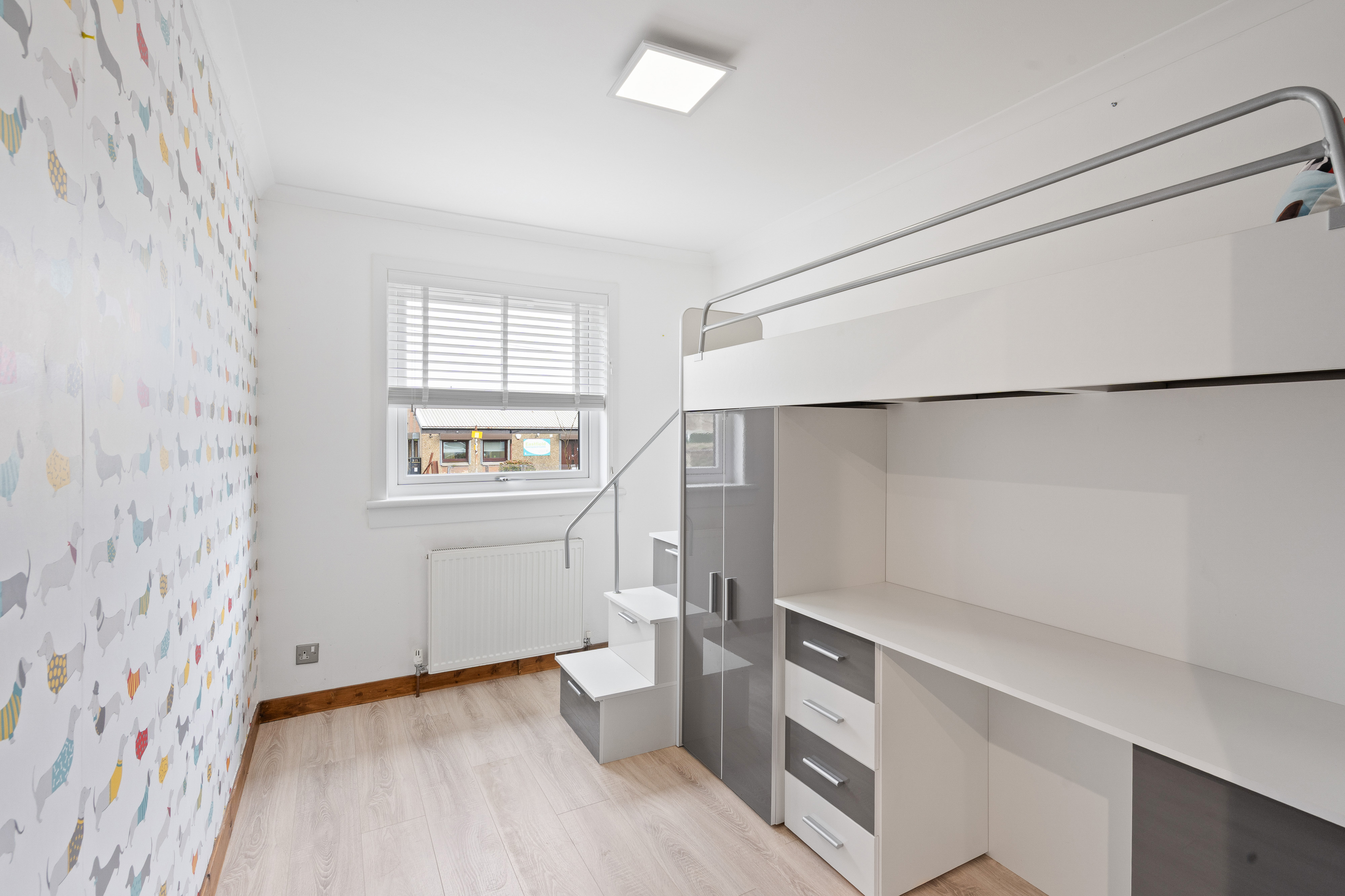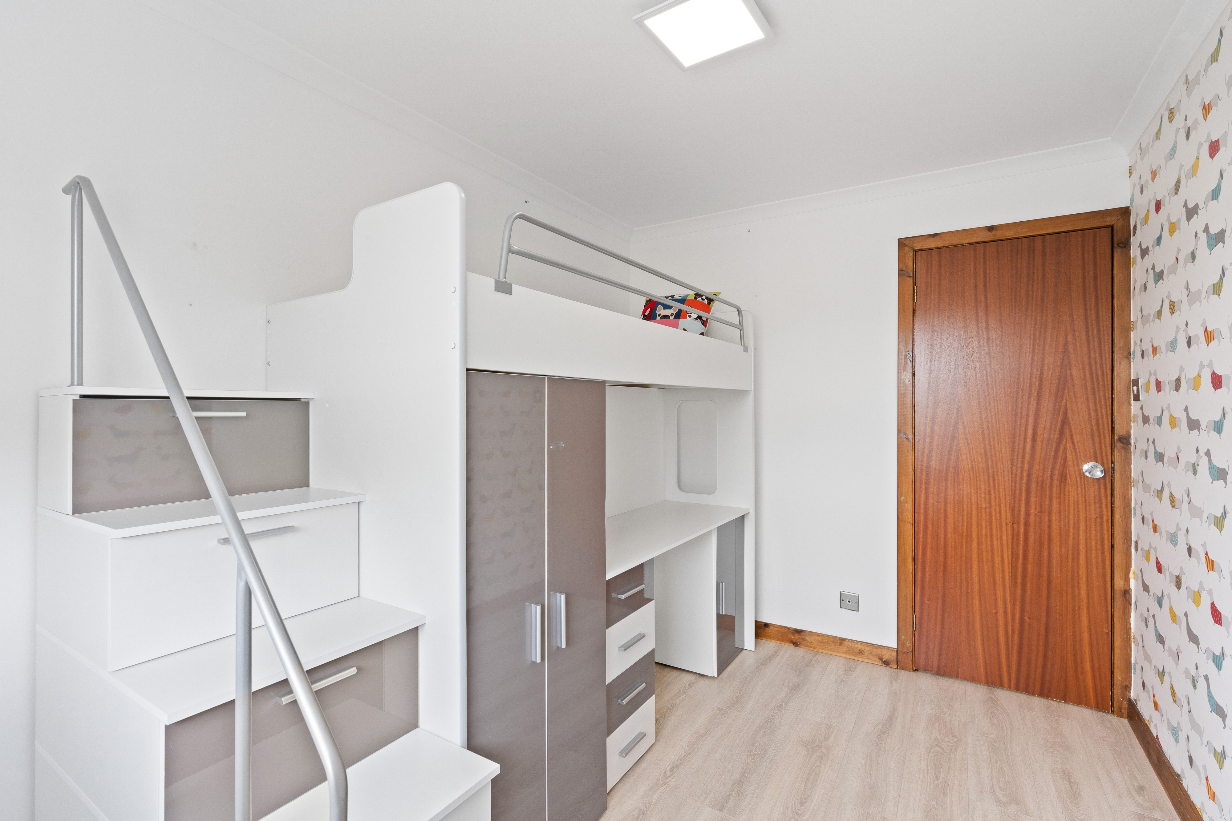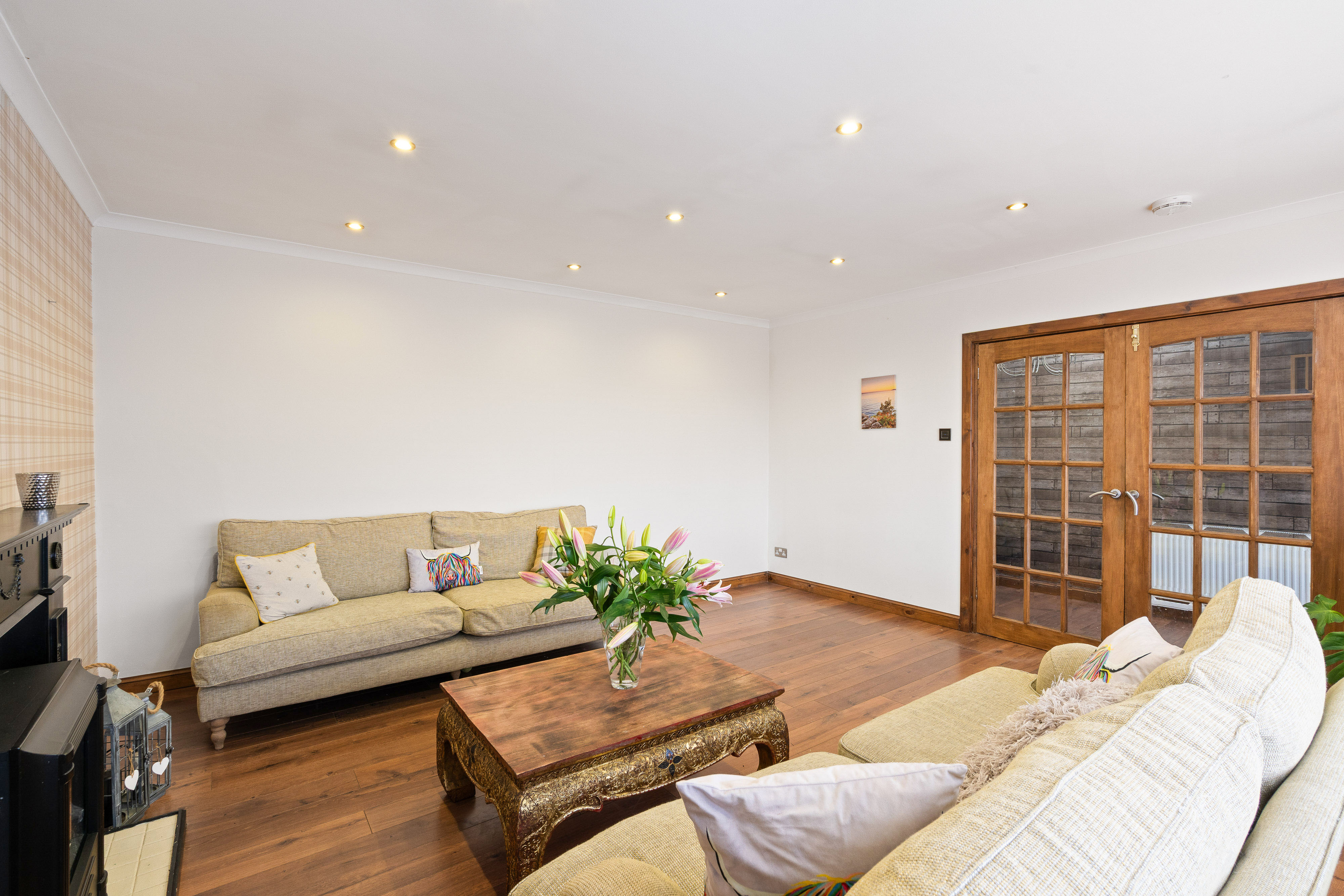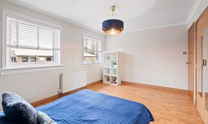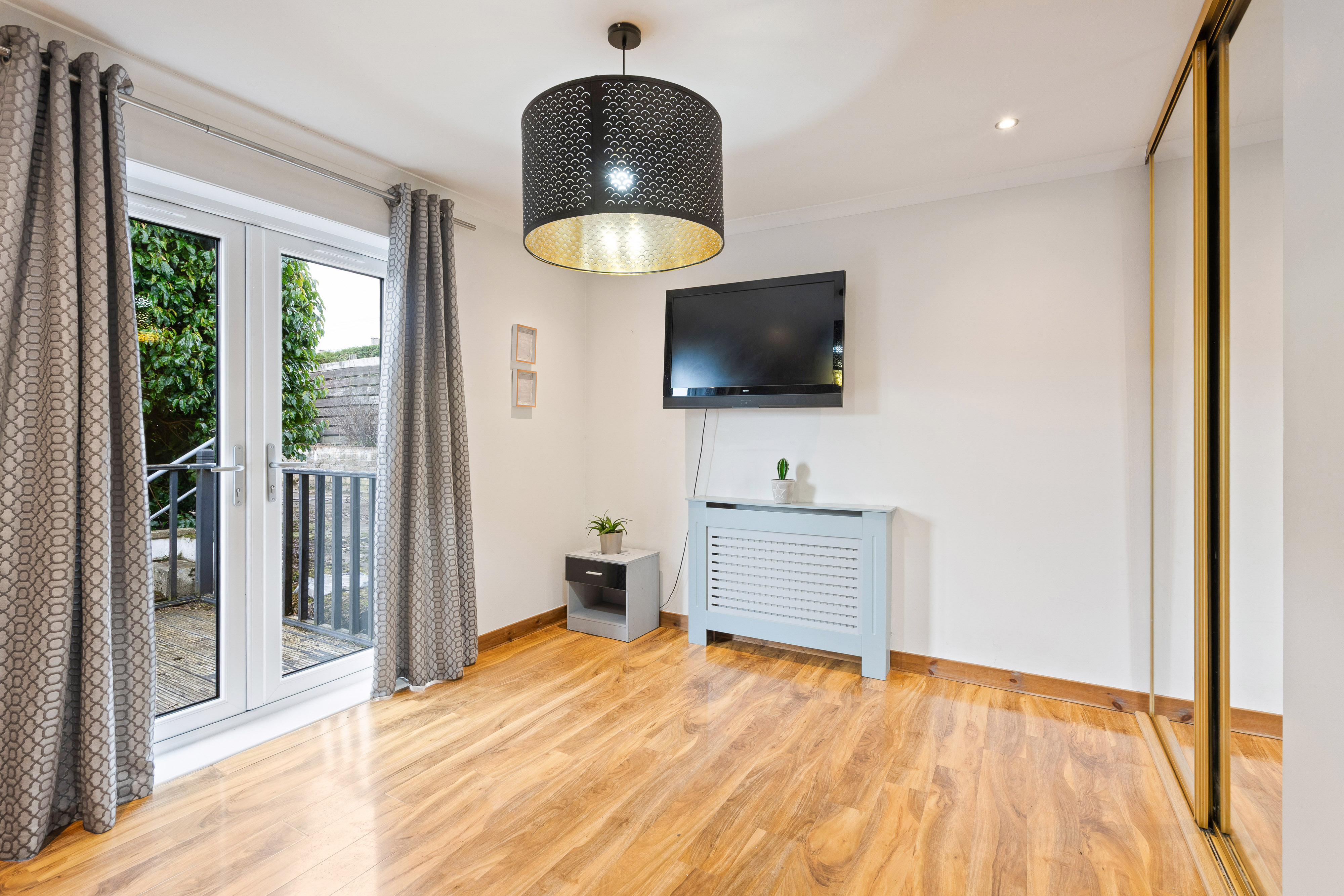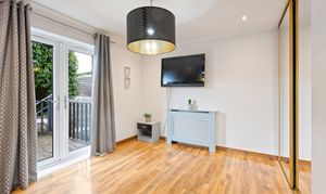 The property offers three genuine double bedrooms. Bedroom one, located towards the front, comfortably accommodates a king size bed with bedside cabinets and benefits from fitted wardrobe space and additional room for a dressing table. Dual aspect windows enhance the sense of light and space. Bedroom two is another generous double and enjoys direct access to the rear garden via patio doors, along with a large double fitted wardrobe. Bedroom three is equally versatile, comfortably fitting a double bed and suitable for use as a guest room, office or family bedroom.