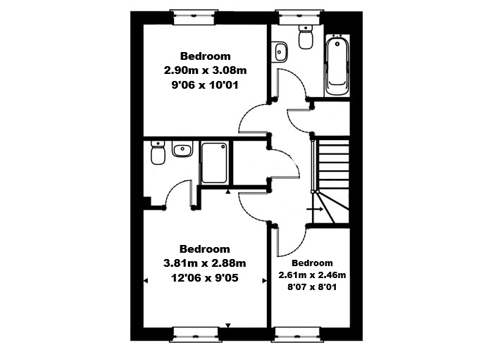 MEASUREMENTS: Lounge 3.06m x 4.43m (10’00” x 14’06”), Kitchen/Diner 5.39m x 3.50m (17’08” x 11’06”), Bedroom 3.81m x 2.88m (12’06” x 9’05”), Bedroom 2.90m x 3.08m (9’06” x 10’01”), Bedroom 2.61m x 2.46m (8’07” x 8’01”), Bathroom 1.69m x 2.24m (5’07” x 7’04”).