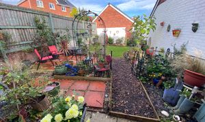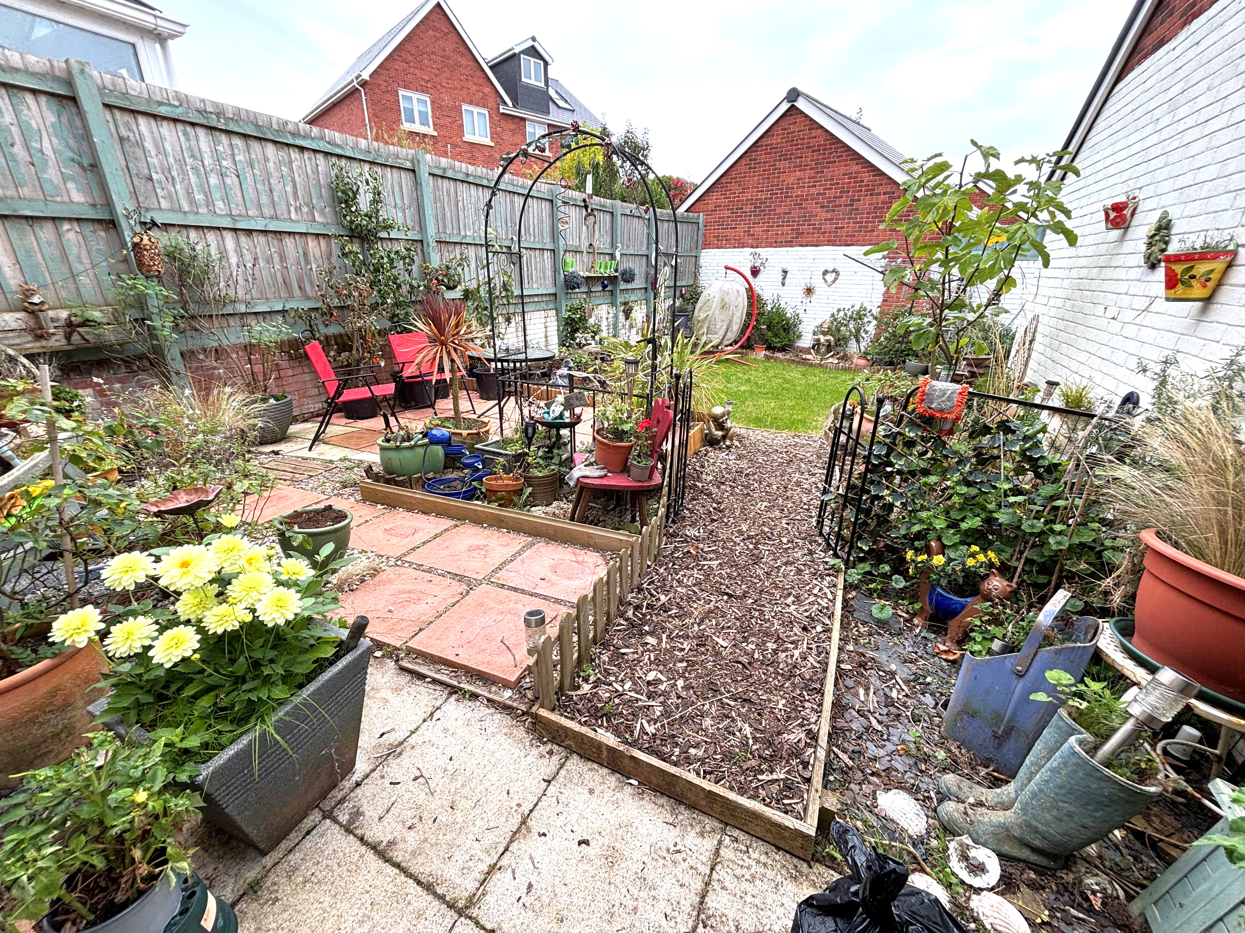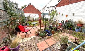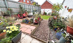 The pretty cottage style rear garden is level and enclosed, accessed by the French doors from the kitchen/diner or a side gate. There is a patio outside the kitchen door and further paved, gravelled and lawned areas with borders, tap and shed.