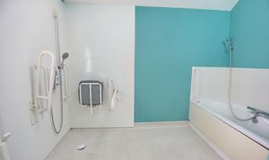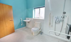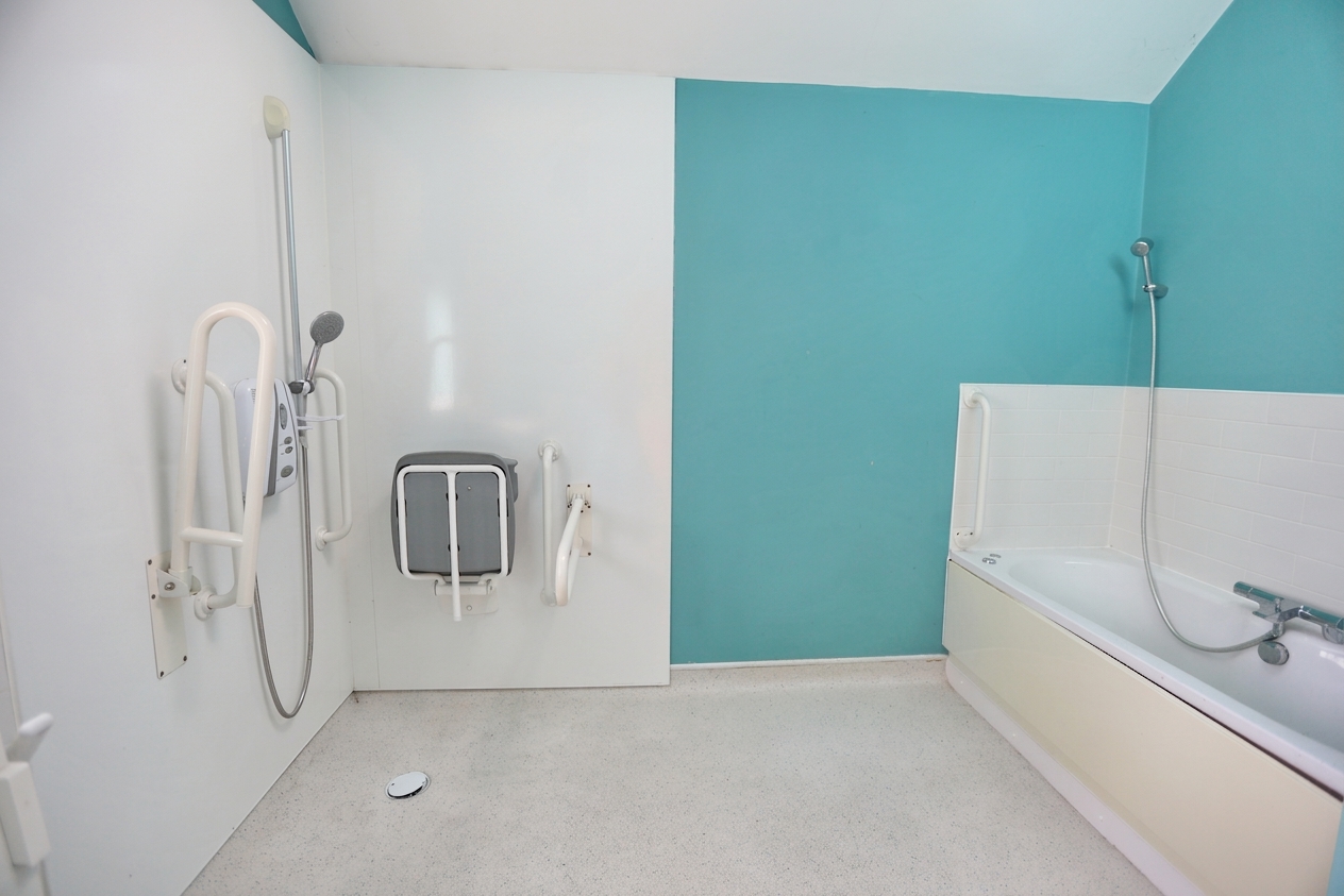 The principal bedroom features a large en suite wet room, designed for accessibility and comfort, while a separate shower room serves the remaining bedrooms and guests.