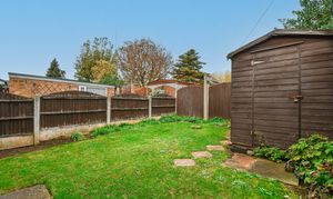 The property includes a good-sized garden featuring a neat lawn area, side access leading directly to the driveway and single garage, and a useful storage shed—perfect for tools or outdoor equipment.