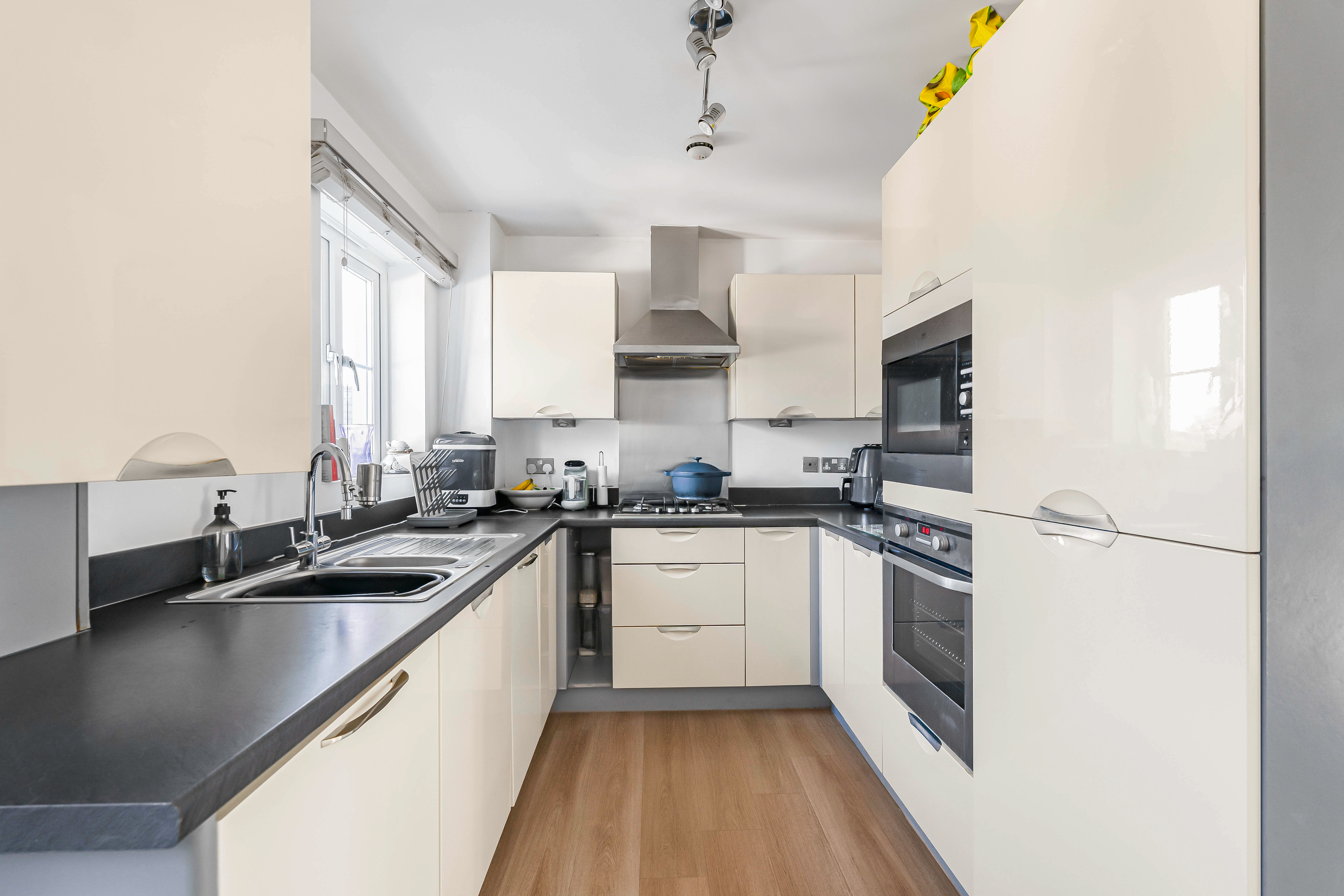 There are two generously sized bedrooms, a sleek and modern family bathroom, and excellent storage throughout.