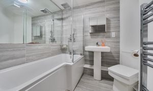 - Family bathroom with bath and shower