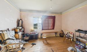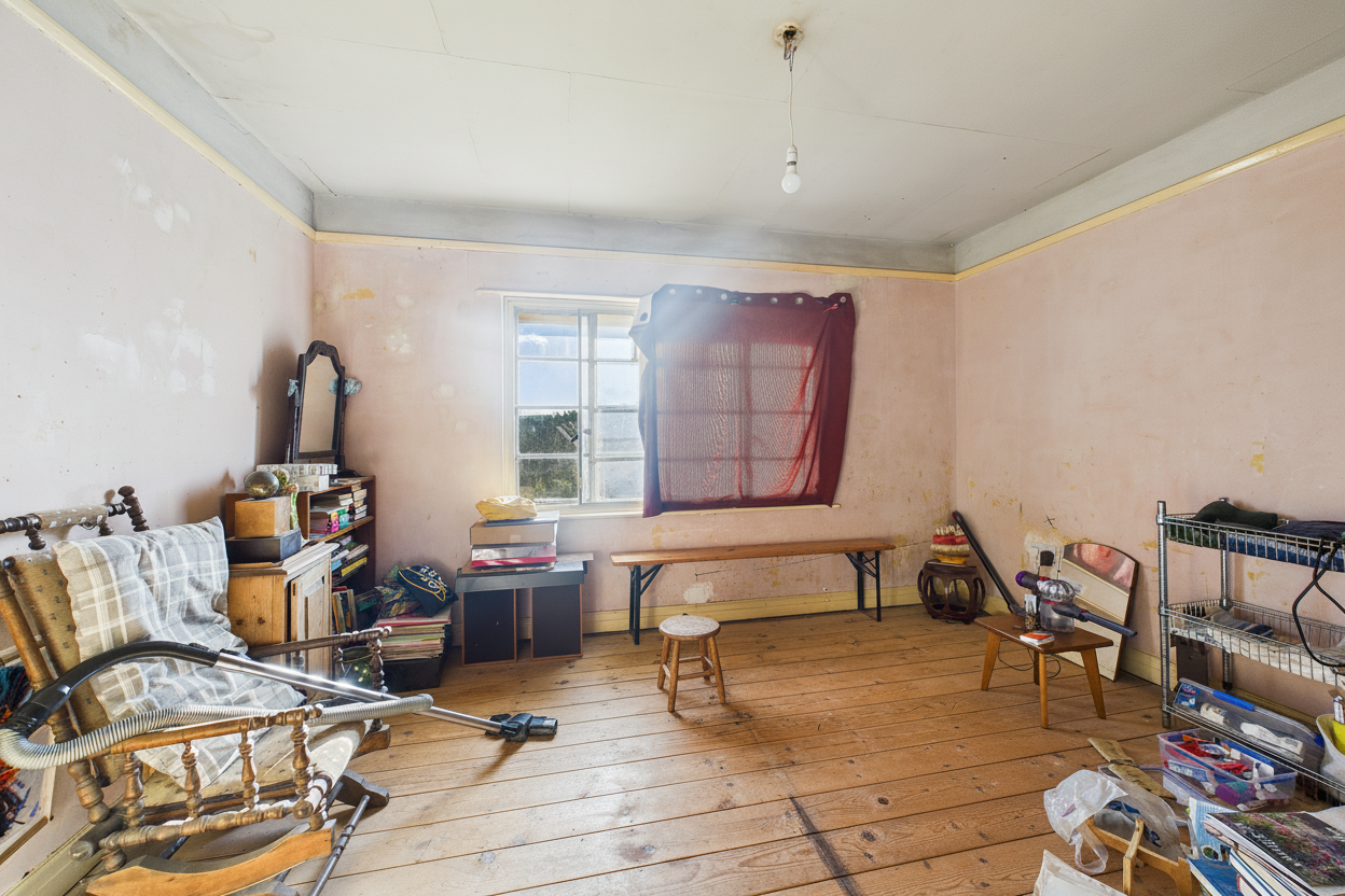 The current accommodation largely faces south and reaches 113sqm / 1,225sqft. It includes a spacious living room with recently added woodburning inset stove and open plan kitchen/diner with pantry. A door from the kitchen accesses the external covered staircase which leads down to the utility room/workshop with a window to the garden and former coal store. Proceeding upstairs we find three bedrooms all taking in far reaching views, and to the far end of the semi-galleried landing, a wet-room with a shower and sink. The house has central heating via an external oil-fired boiler, although there is gas in the road if you wanted to bring this up to the house itself.