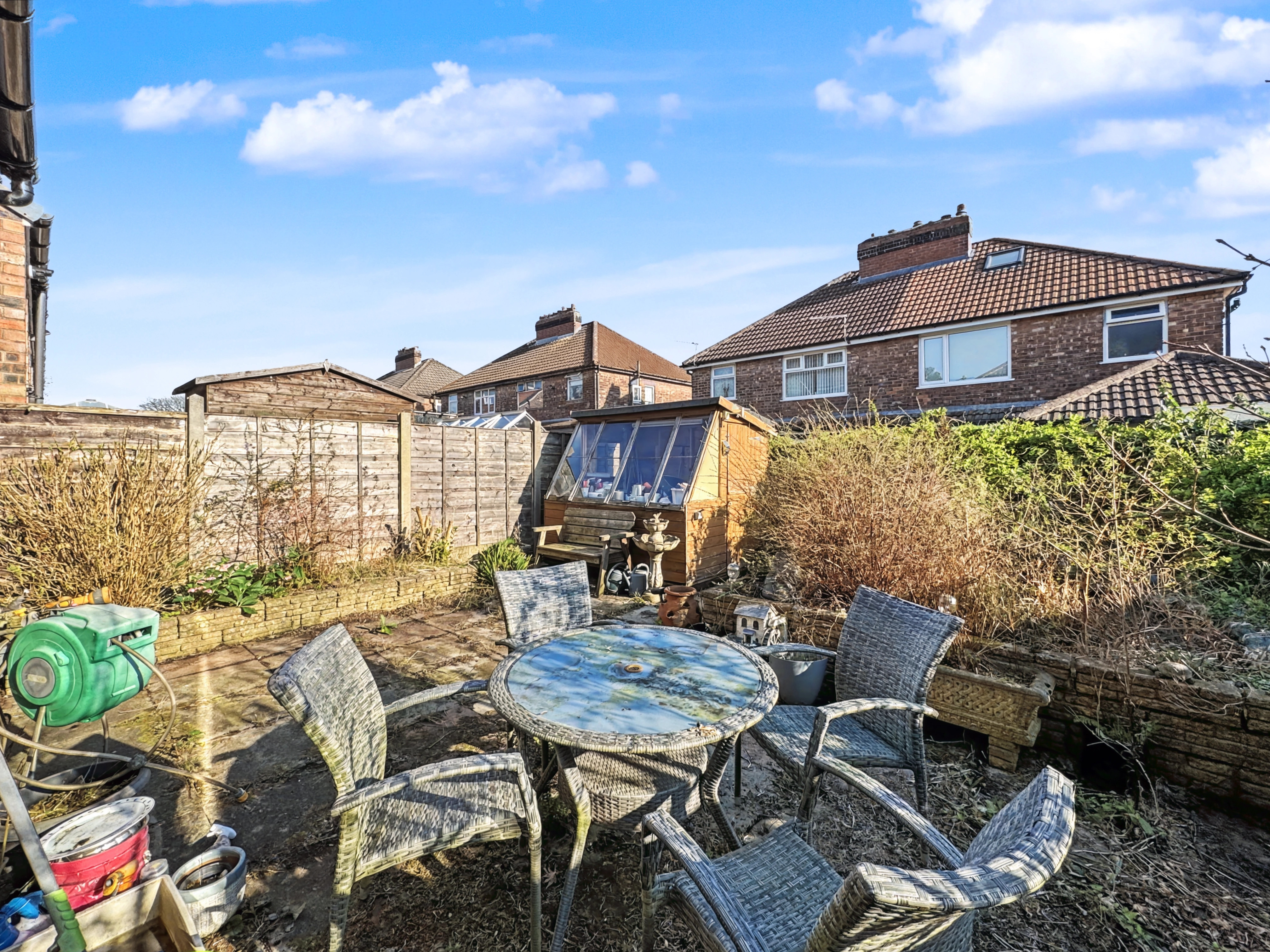 Externally, to the rear the home benefits from a paved patio area, walled planted garden, providing ample space for outdoor seating, family activities, or further landscaping to create your ideal outdoor retreat. To the front, driveway parking ensures convenient off-road parking.