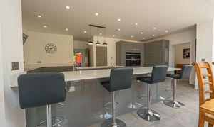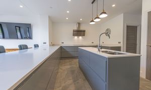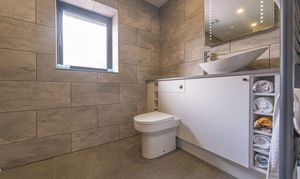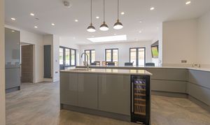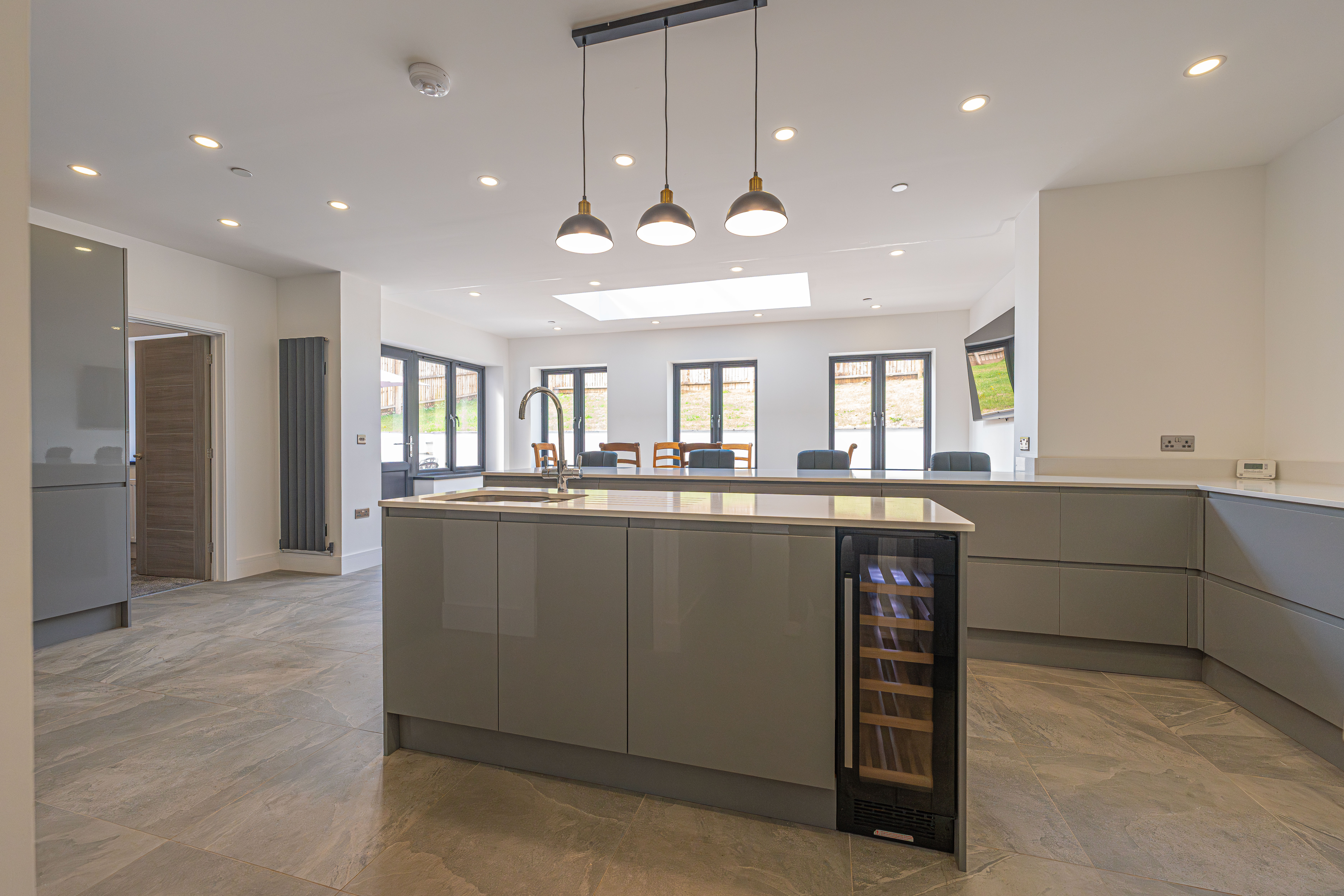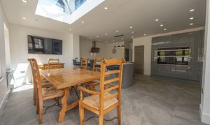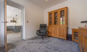 This magnificent property is presented to an outstanding quality throughout, offering a high standard of contemporary living. Upon entry to this incredible family home, we can find a W.C from the entry hallway, as well as the spacious living room, which is flooded with natural light, and offers an ideal space for relaxing and welcoming friends and family. Continuing through the home, we arrive at the impressive kitchen and dining room, with both spaces sharing a glorious open plan design to promote a fluid user friendly experience. The kitchen itself is incredible sleek and practical, with an abundance of counter space, storage options and many high-end appliances integrated into the worktop. The kitchen also features a sizeable breakfast bar, in addition to a glorious dining area, with numerous windows with a view of the garden, and an overhead skylight to allow sunlight to cascade throughout the room. From the kitchen we can also access an understairs storage cupboard, a fantastic utility room, and a further reception room, which would be ideal for a home office, or another snug living room.