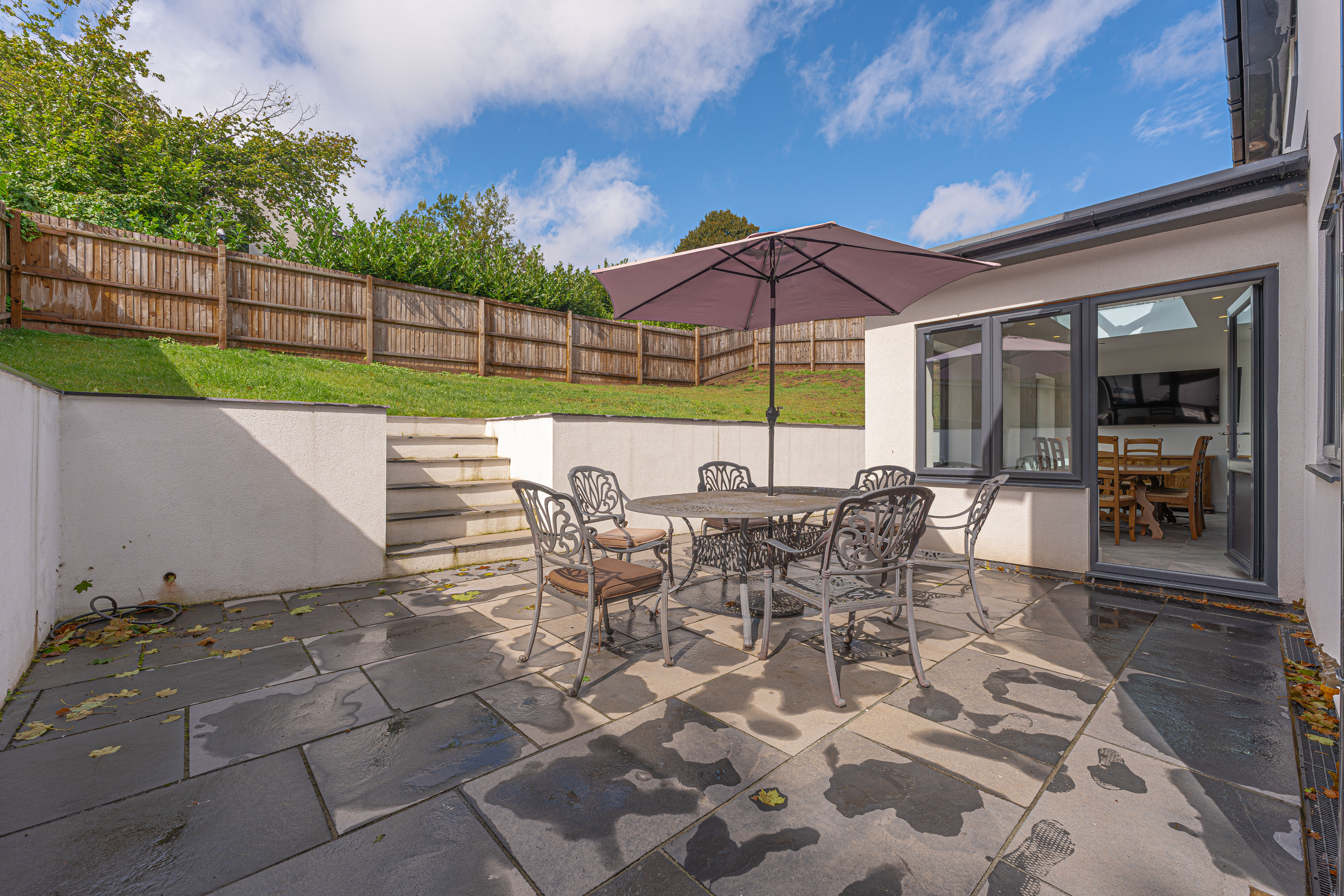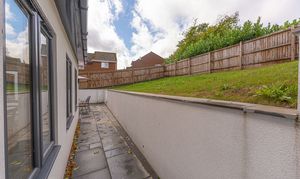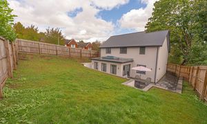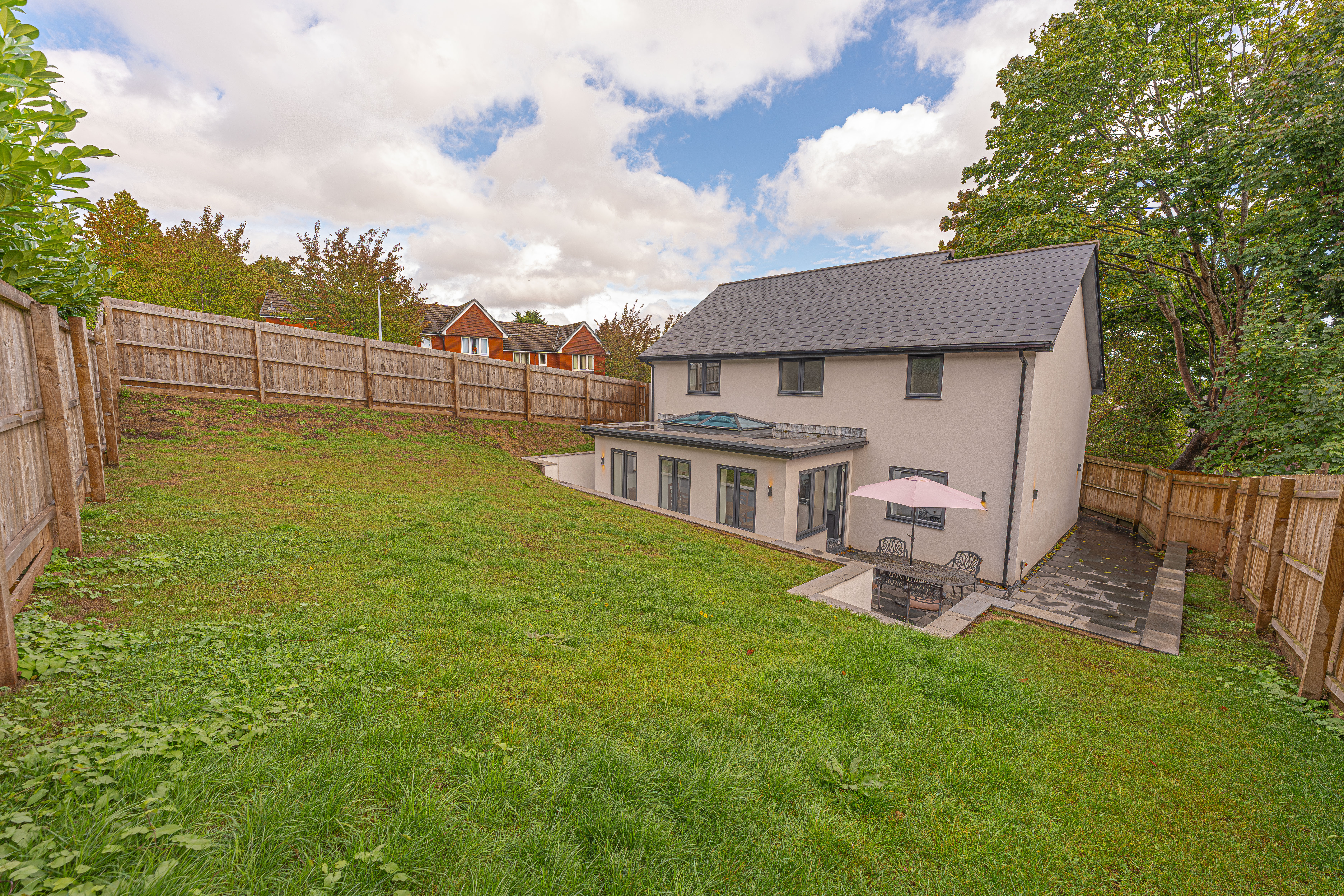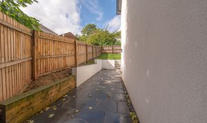 Stepping outside we arrive at the glorious rear garden, which is completely enclosed and offers an abundance of space for residents to enjoy, with a grand patio space surrounding the house, with steps up to a sizeable grass lawn beyond. This impressive garden plot is a real highlight of the property, and is perfect for relaxing in the sunshine, and welcoming guests for a wide variety of activities, such as al-fresco dining, family games and garden parties. The property also features a large driveway to the front of the property, which can park at least 2-3 vehicles, tucked away on a private plot with secure gated access from the main road.