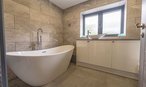 Ascending to the first floor we can find the property offering four generously sized bedrooms, which are all double in size. Two of these bedrooms have the added benefit of en-suite bathrooms with a shower and toilet, while the communal family bathroom is available to access from the landing, and features both a bathtub and a separate shower suite.