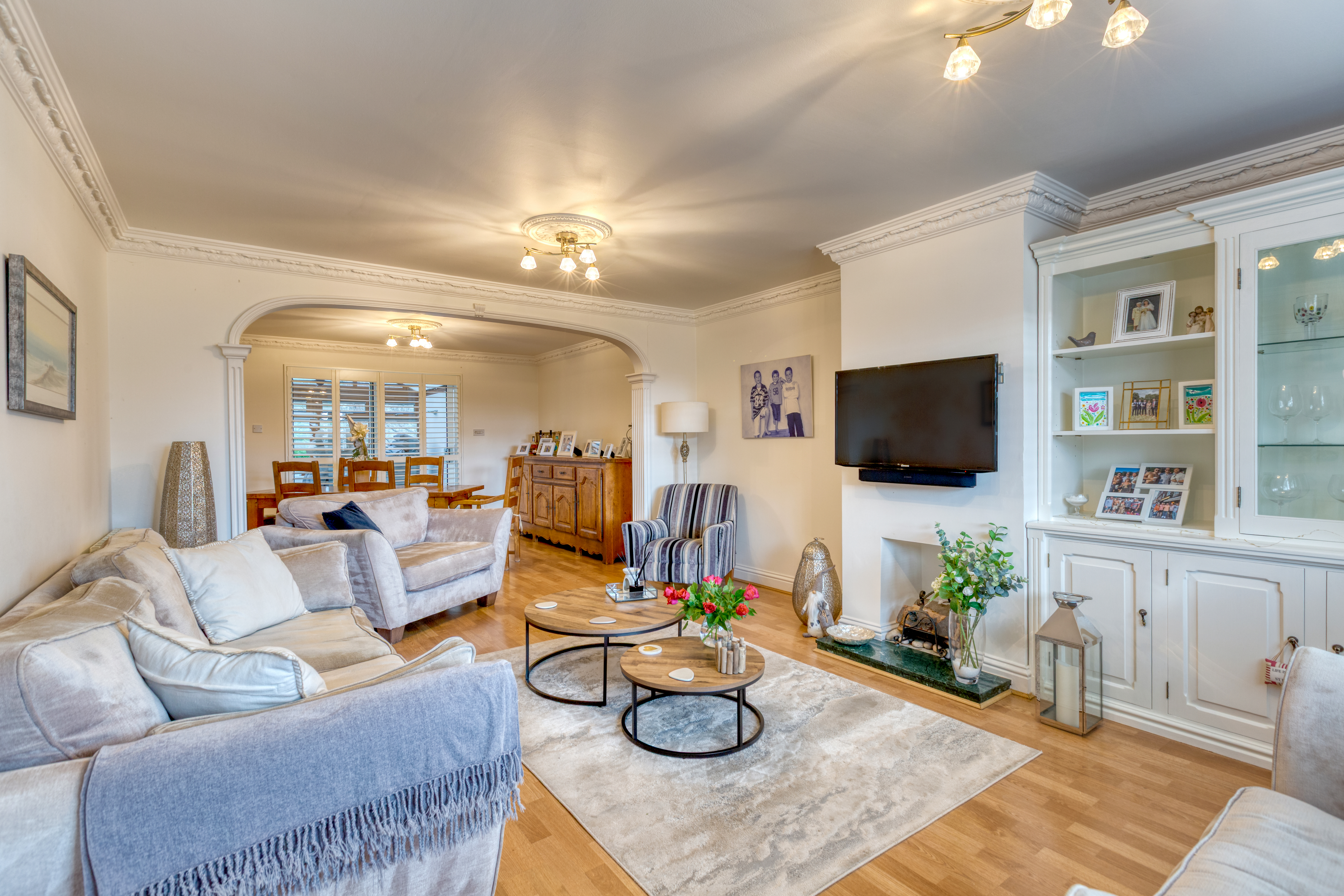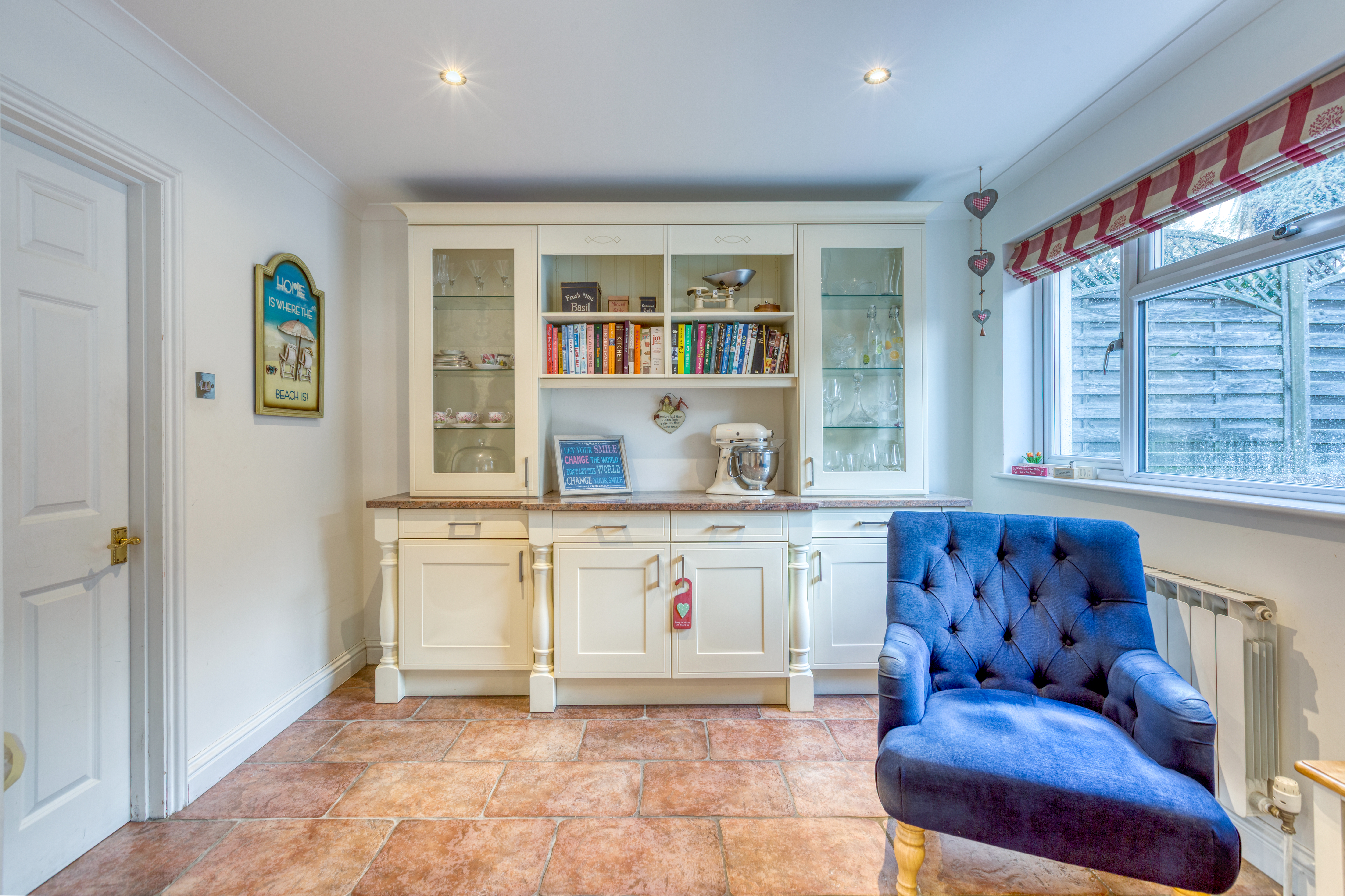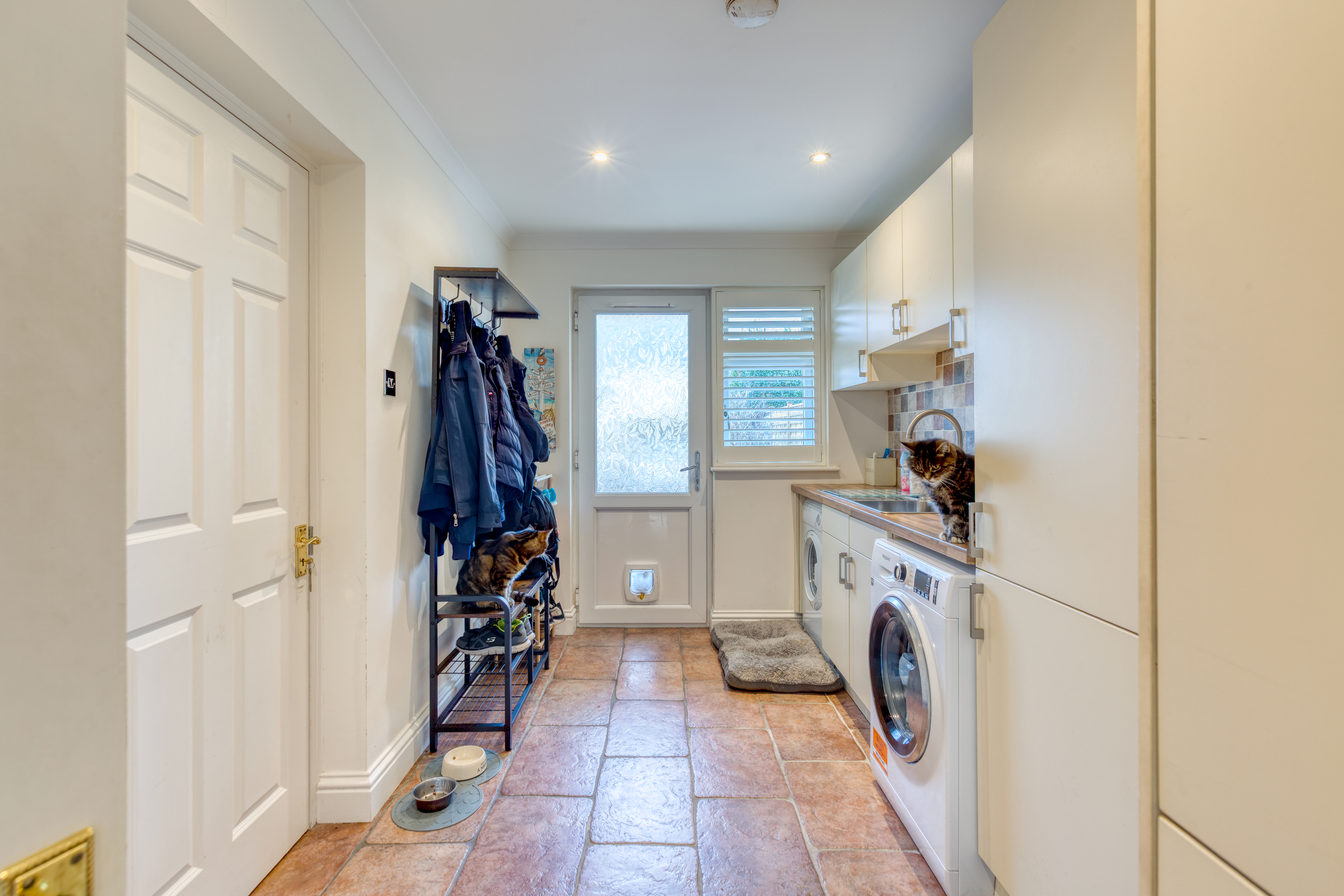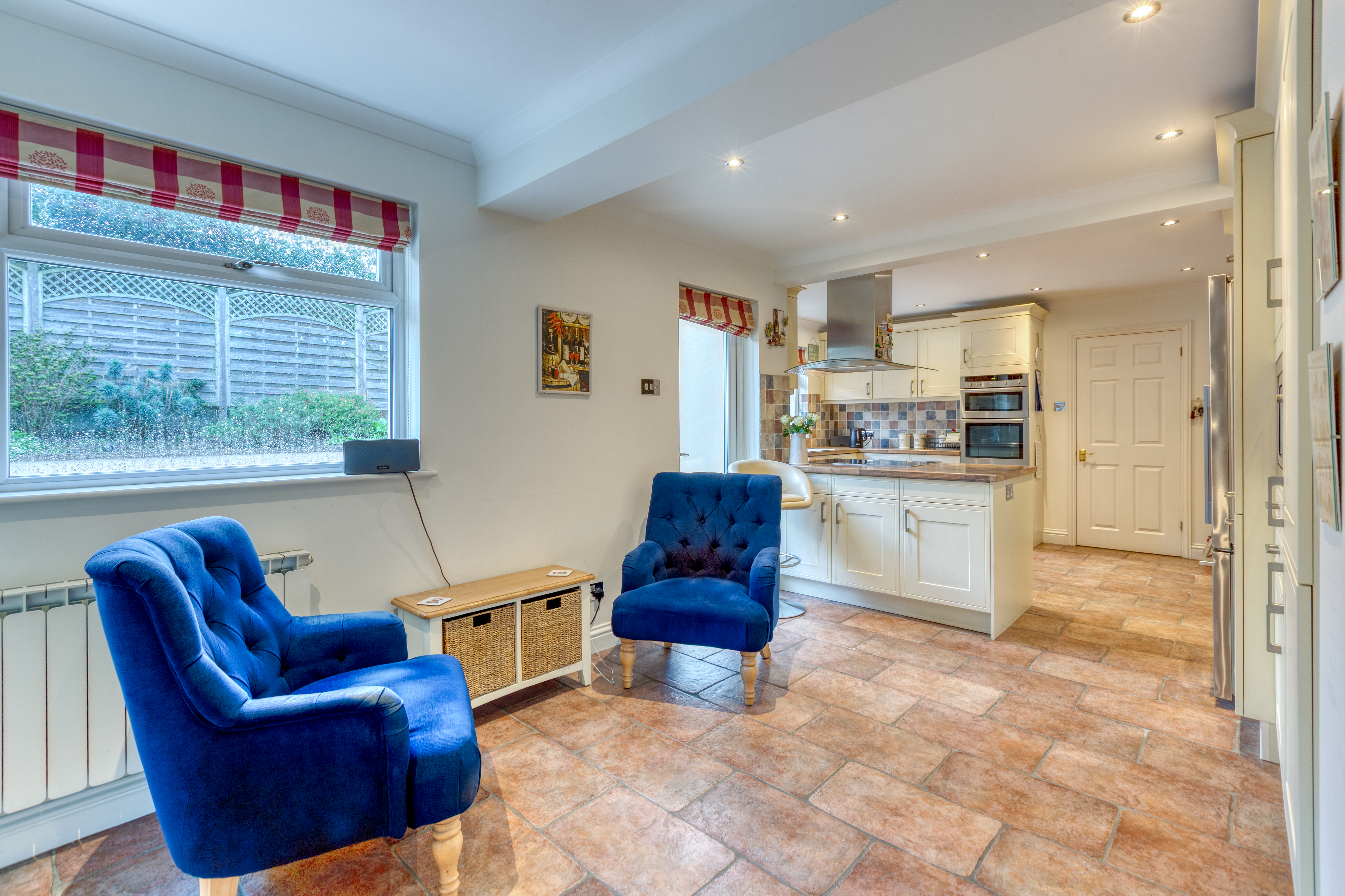 The kitchen/breakfast room is a generous and versatile space that also serves as a family room, making it a great place for spending time together. It easily accommodates a dining table and offers a relaxed environment for everyday living. This room also links to a useful utility room which has a courtesy door to the garage, and a downstairs wc adding to the practicality of the ground floor .