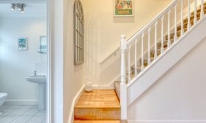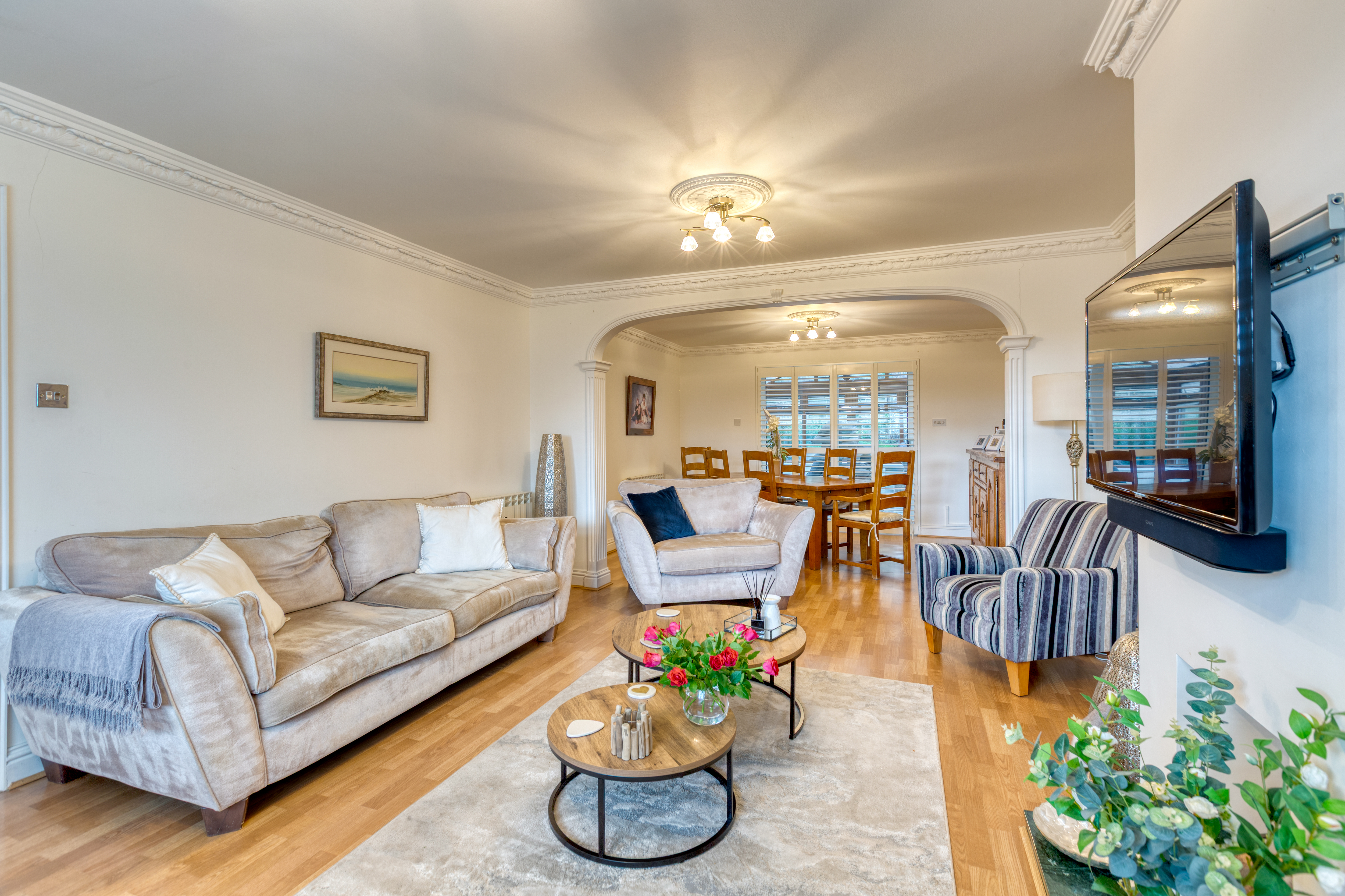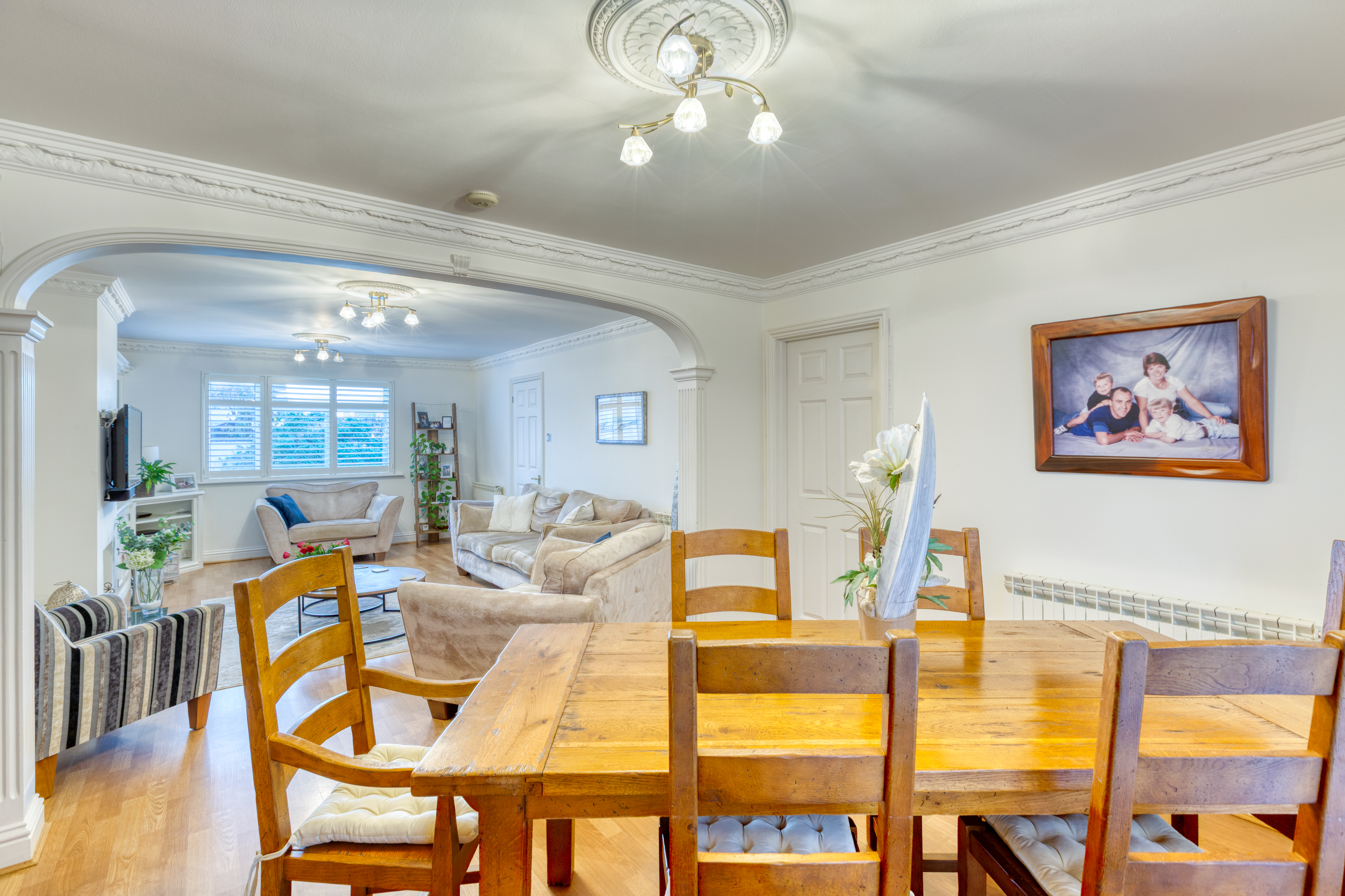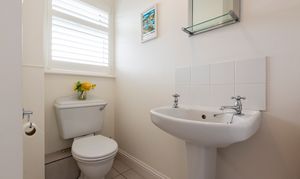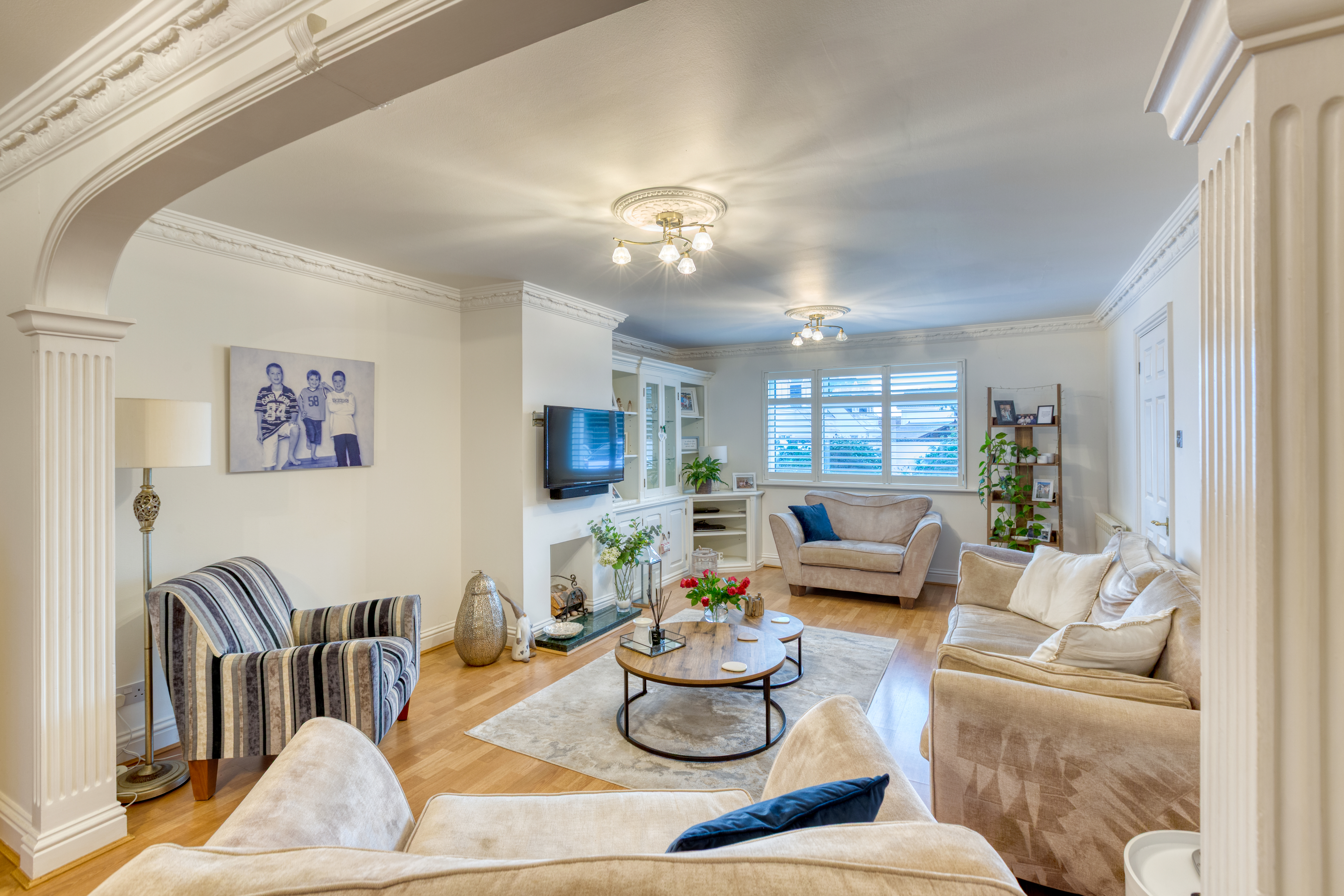 The kitchen/breakfast room is a generous and versatile space that also serves as a family room, making it a great place for spending time together. It easily accommodates a dining table and offers a relaxed environment for everyday living. This room also links to a useful utility room which has a courtesy door to the garage, and a downstairs wc adding to the practicality of the ground floor .