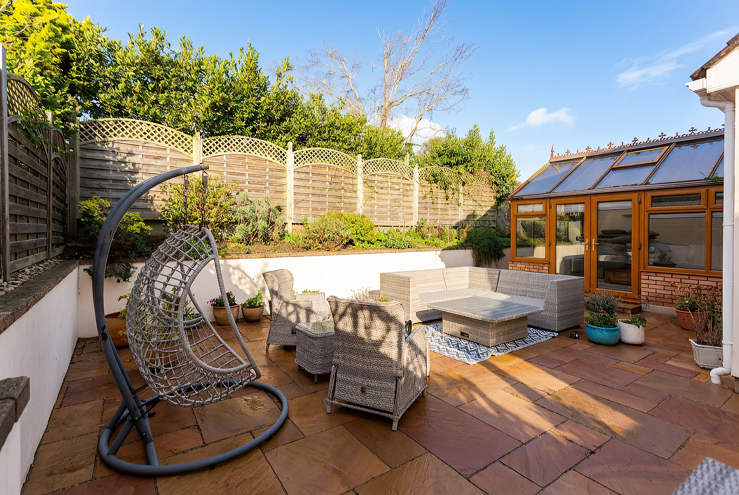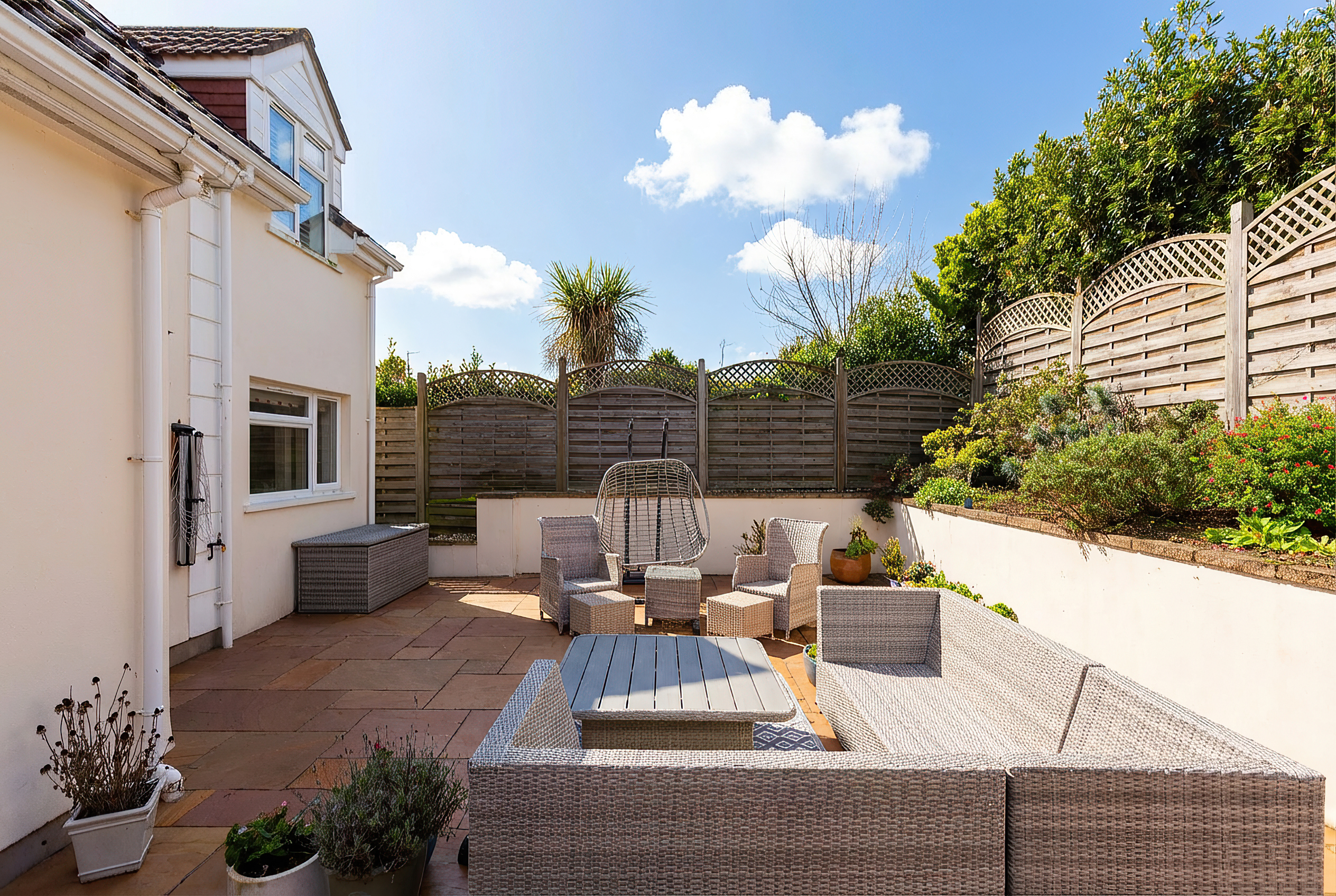 To the rear there is a lovely patio garden which is very private and not overlooked and to the front there is a south facing lawned garden.