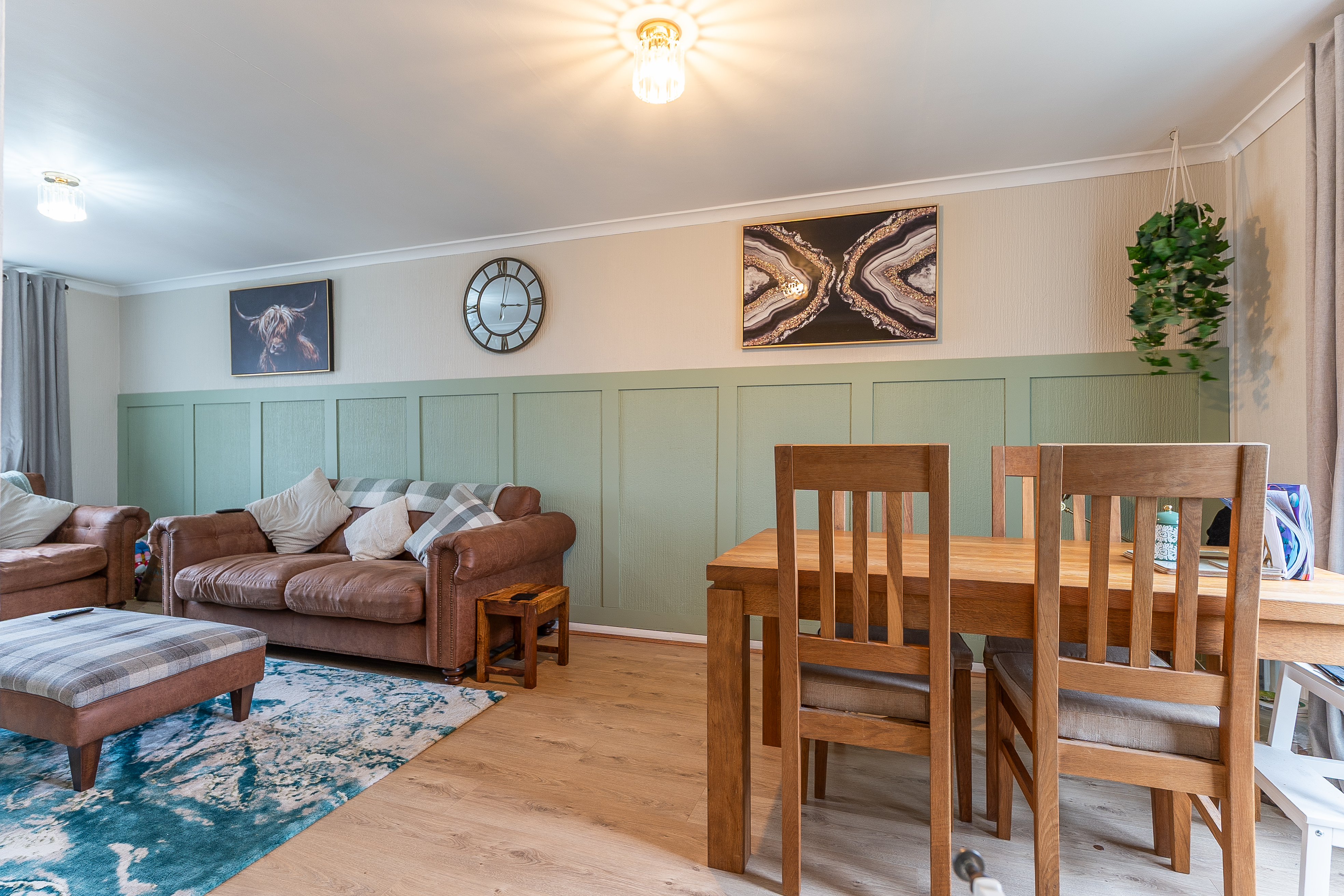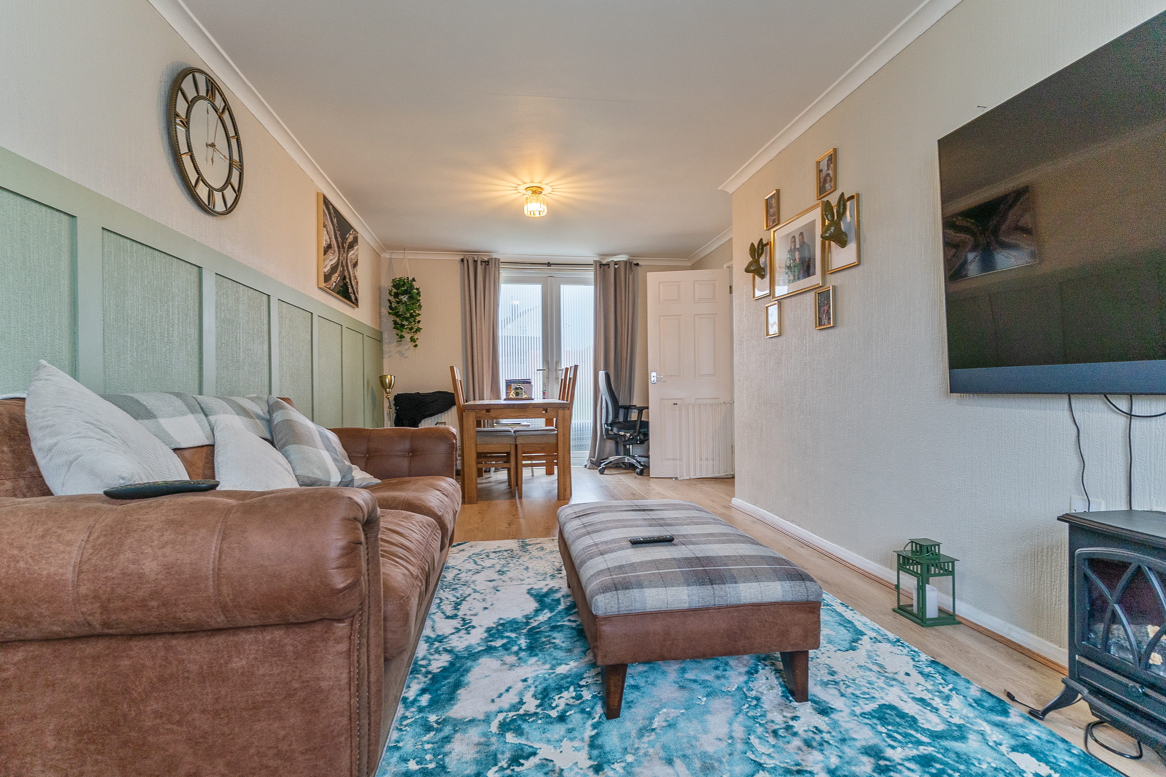 You enter the property through an initial hallway, which provides access to the main living areas and stairs leading to the first floor. To the left is the spacious and well-presented lounge/diner, a bright and comfortable open-plan room offering plenty of space for both seating and dining. This versatile area is ideal for family living and entertaining, with large windows allowing natural light to fill the space. To the right is the large kitchen, fitted with ample storage and worktop space, and providing a practical layout suited to everyday use. Both the lounge and kitchen offer direct access to the rear garden, enhancing the flow of natural light and providing an easy connection to outdoor living.