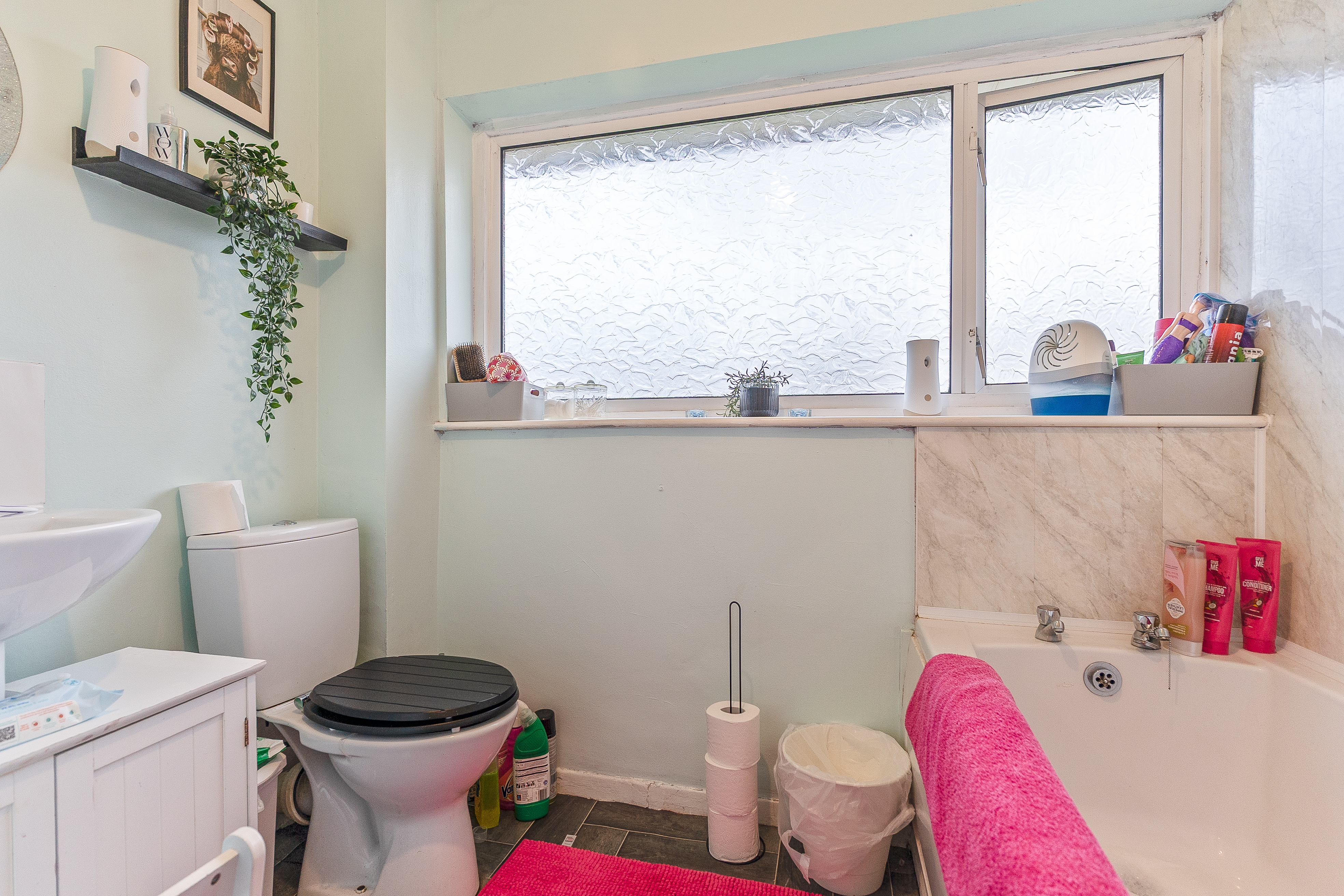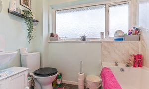 On the first floor, the property offers three well-proportioned bedrooms, comprising two generous double rooms and a single bedroom. Each room is tastefully decorated and provides flexibility for use as bedrooms, guest rooms, or home office space. Completing this floor is the family bathroom, fitted with a modern suite including a bath, WC, and hand basin, offering both style and functionality.