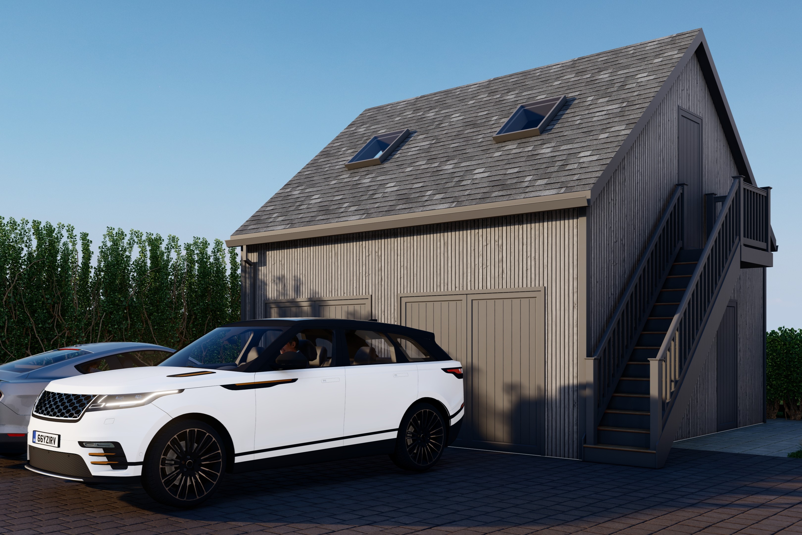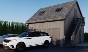 The exterior will be a statement in quality and craftsmanship. Rich blended brickwork, vertical timber cladding and sleek aluminium windows will combine to deliver a distinctive architectural style, while feature full-height glazing will create a striking aesthetic to the rear. A matching detached double garage, complete with external staircase, will include a generous first-floor studio space — perfectly suited for a home office, gym, hobby room or additional storage.