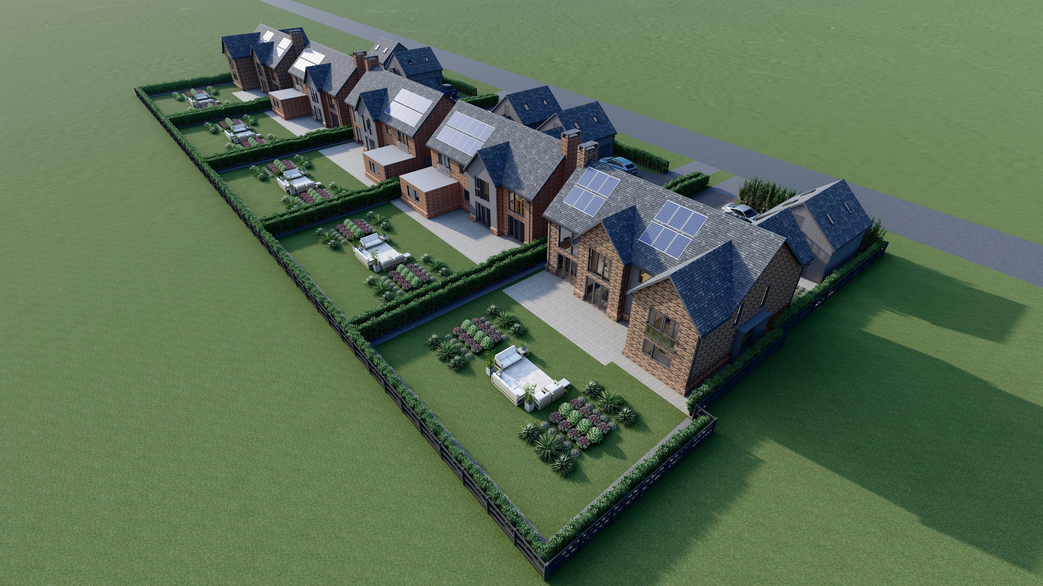 Upstairs, the generous landing will open into five superbly arranged bedrooms. The master suite promises a luxurious retreat, complete with a private dressing area, a stylish en-suite and elegant double doors with Juliet glazing overlooking the garden. Bedroom two will also enjoy its own en-suite, while the remaining bedrooms will be served by a contemporary family bathroom finished to a high standard.