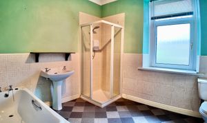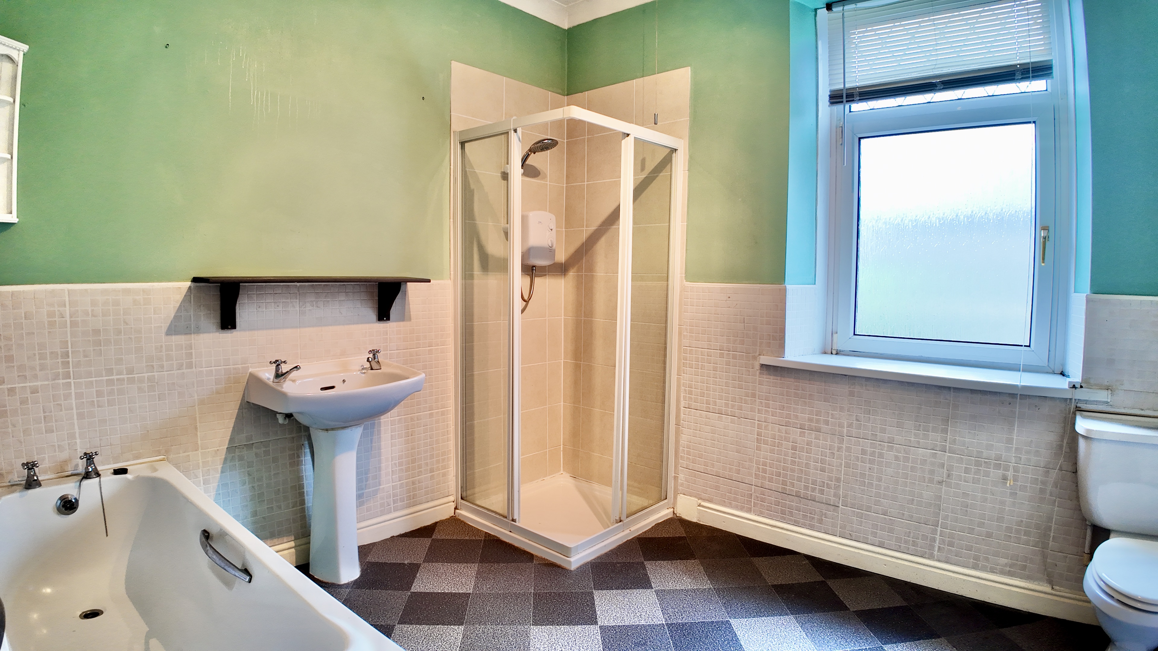 Upstairs, you'll find a family bathroom that is sure to impress. Featuring a separate shower and bath, this is the perfect spot to unwind and relax after a busy day. No need to rush through your morning routine with this luxurious setup.