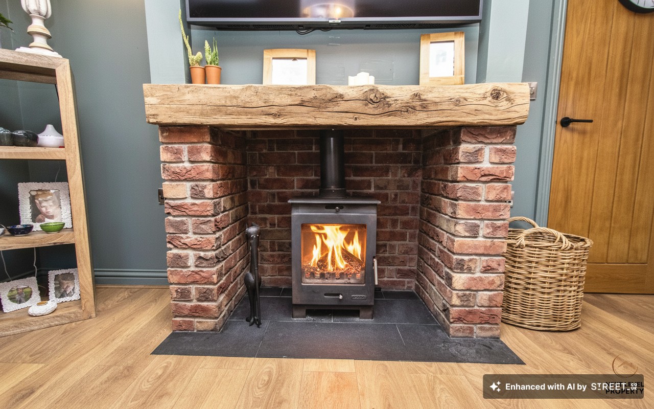 - Feature wood burner and fireplace creating a cosy focal point