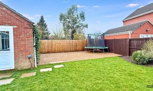 Occupying a generous corner plot, the outdoor space is a true highlight. There are lawned gardens to the front and side, offering excellent space for families, while the rear garden combines lawn with a gravelled play area, ideal for a trampoline or outdoor activities. A covered patio with outdoor lighting provides the perfect entertaining space.