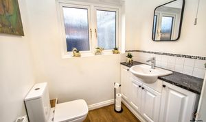 Fitted with a modern two-piece suite comprising a close-coupled WC and a hand basin set within a vanity storage unit, providing both practicality and useful concealed storage. A uPVC window to the rear allows natural light and ventilation, keeping the space bright and fresh. An essential addition for modern family living and ideal when entertaining guests.