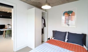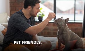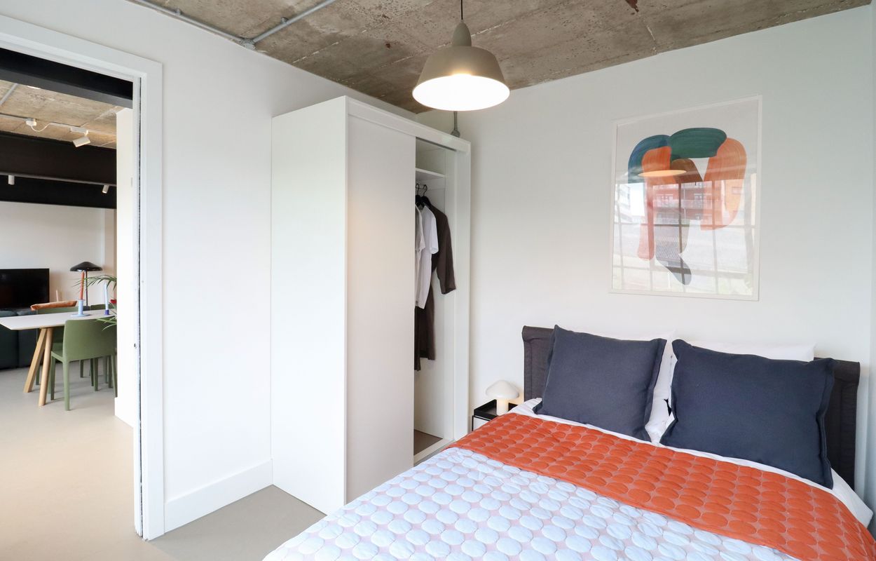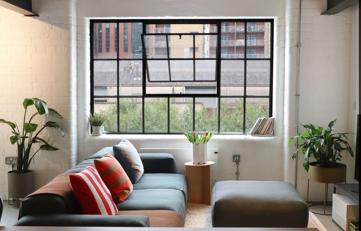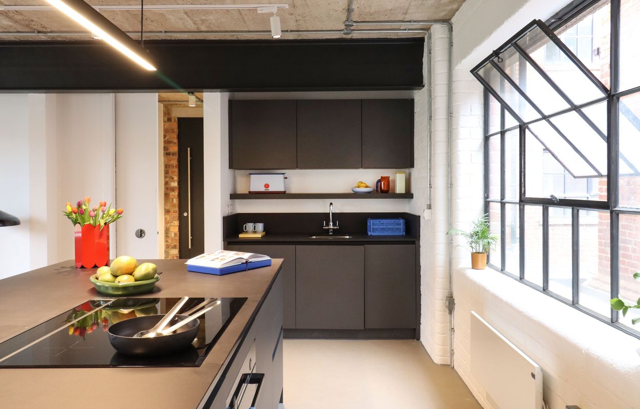 Designed with renters in mind, this pet-friendly home is approximately 20% larger than the average new build. Full of industrial charm, it boasts exposed concrete ceilings, painted brickwork and striking dual-aspect Crittall windows that flood the space with natural light. Onsite parking is available.