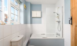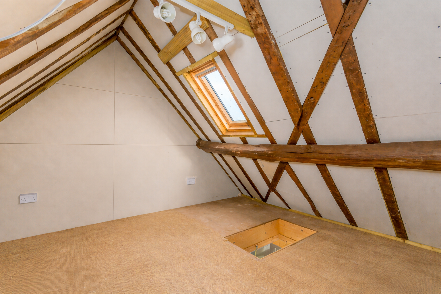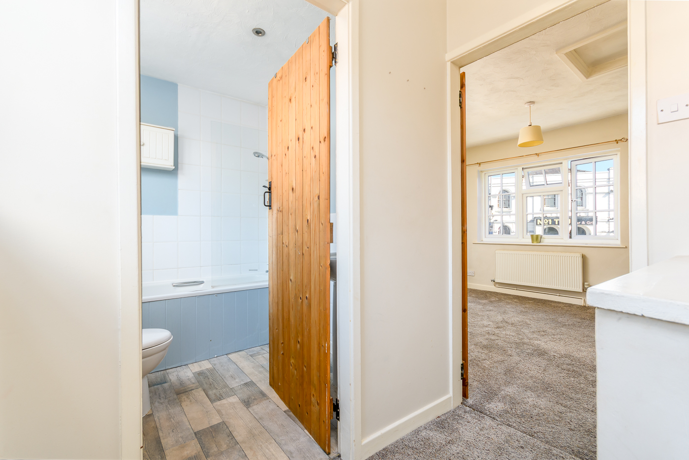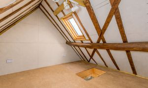 Upstairs, the generous double bedroom provides a tranquil sanctuary, boasting charming cottage windows and plenty of room for storage solutions. The bathroom is tastefully appointed, featuring a contemporary suite and elegant tiling, ensuring comfort and functionality. Up into the loft space, you can immediately see the fantastic potential it offers for creating valuable additional living space (subject to obtaining the required permissions).