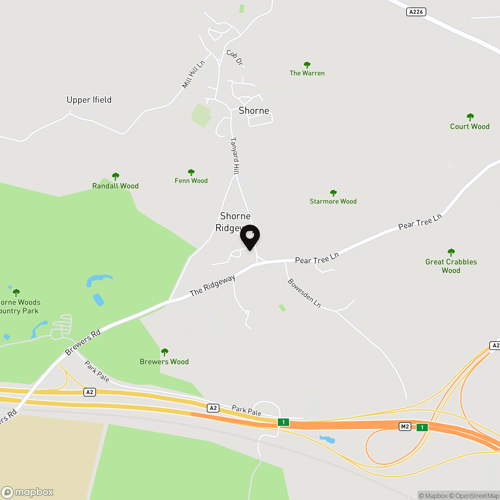 The village of Shorne is conveniently located between Rochester and Gravesend. The Shorne Woods Country Park is within walking distance of the property via a pedestrian laneway at the end of Racefield Close onto Woodland Lane. The A2/M2 highway is a very short drive from the property - access from the Cobham exit - and Ebbsfleet International Train station is 10 minutes by car as is Bluewater shopping mall.