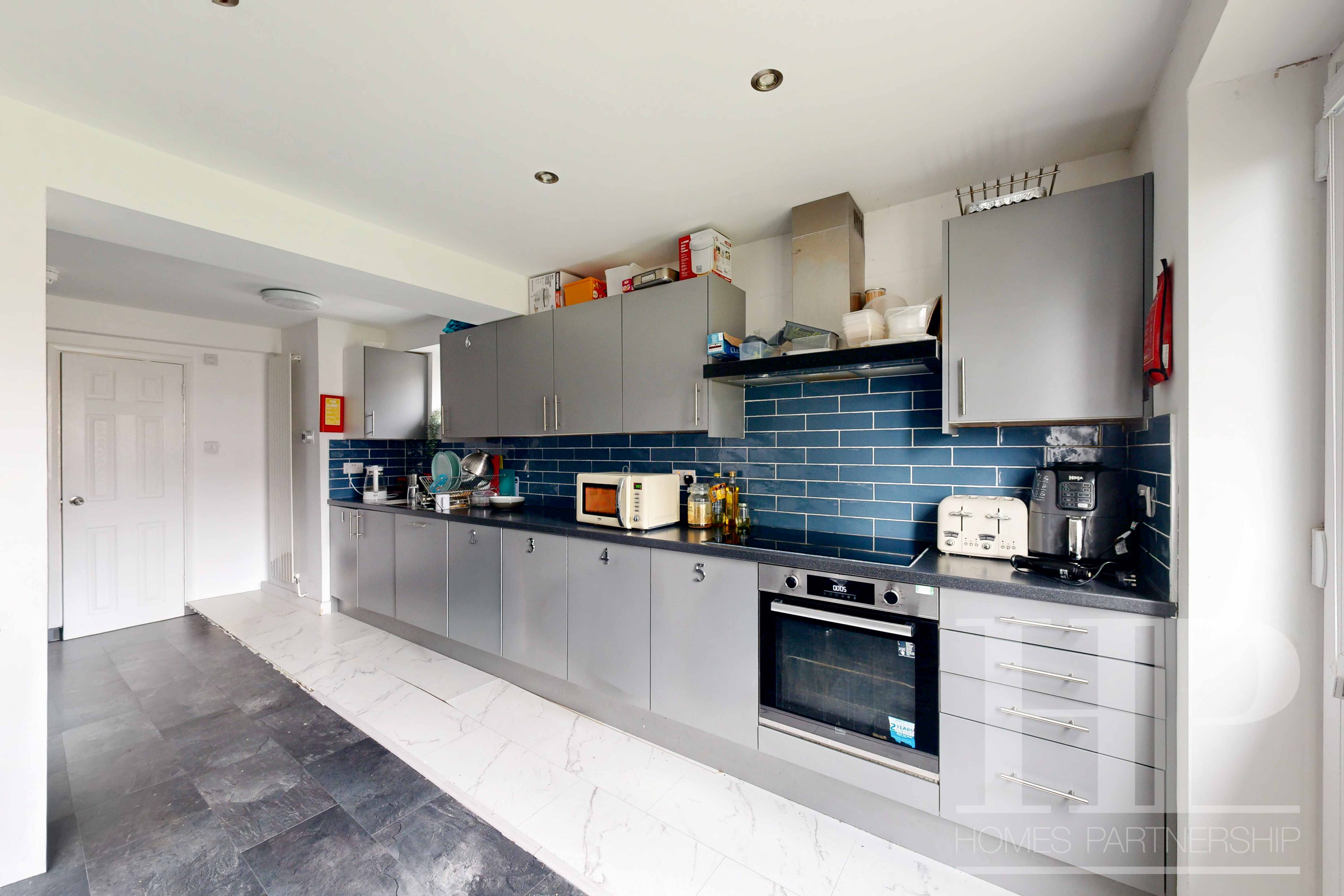- Fitted communal kitchen with white goods