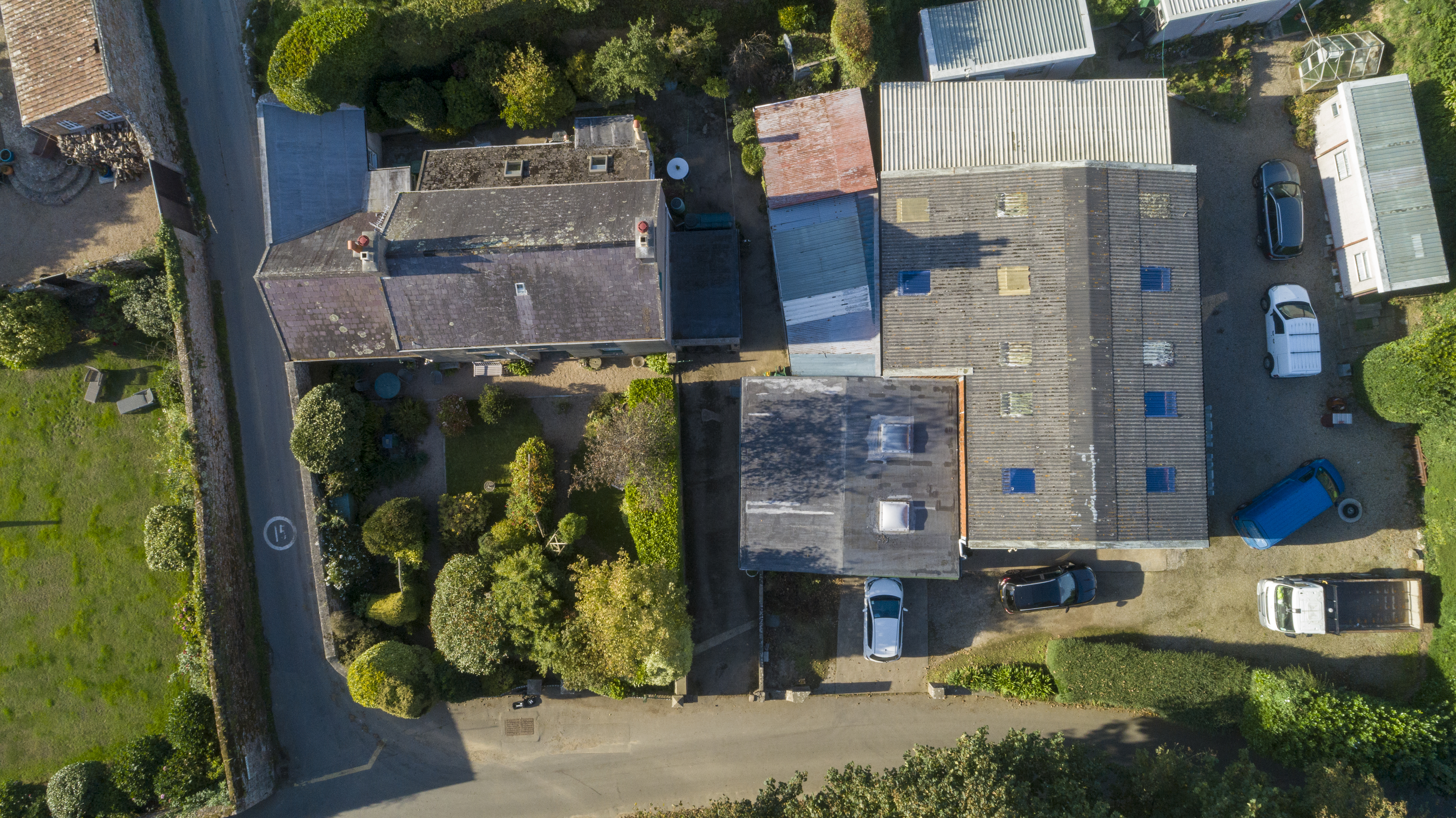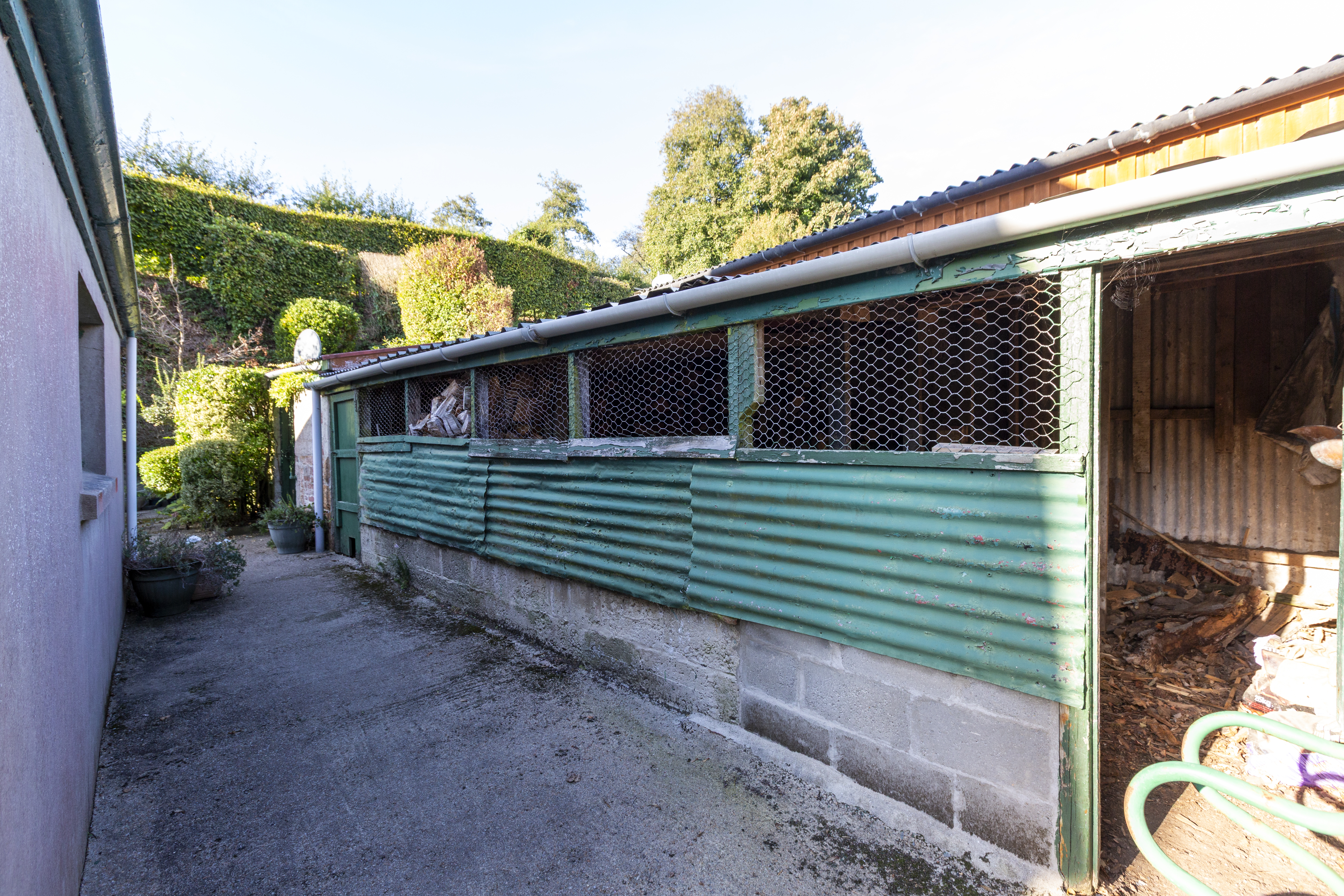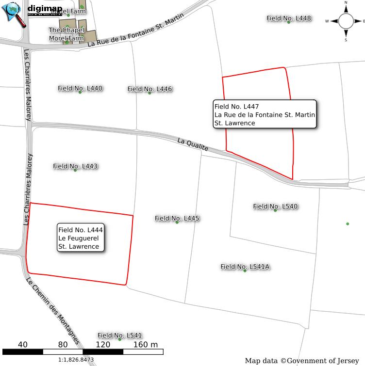 Lovely mature south-facing front garden filled with mature plants, trees, and shrubs. There are three large commercial outbuildings, currently zoned as agricultural machinery stores, along with three static portacabins which were previously used as staff quarters when the property functioned as a working farm. Included in the sale are two fields numbered L444 and L447, one measuring approximately four vergées and the other three and a half vergées.