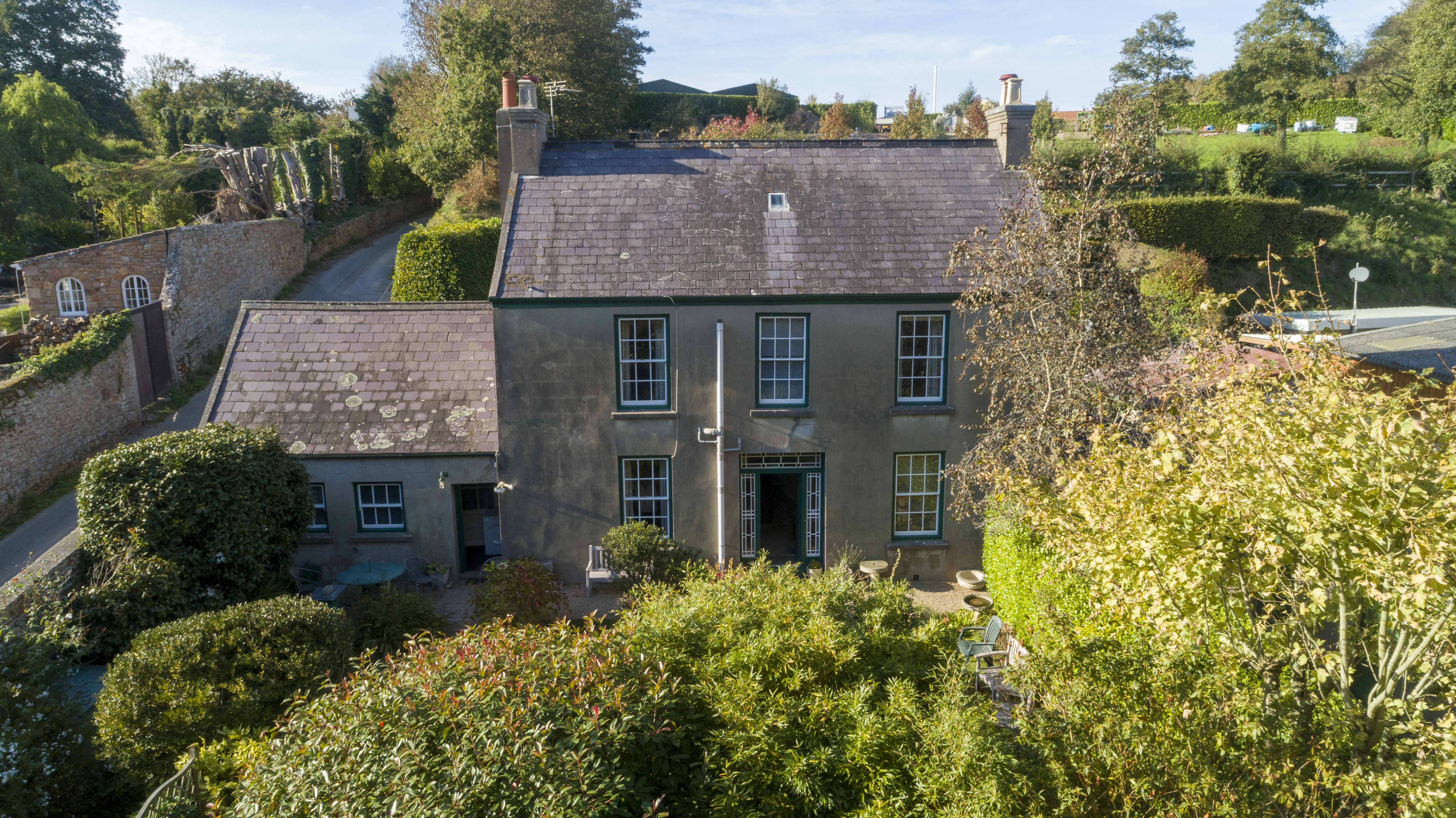 Situated in rural St. Lawrence, this generously sized farmhouse has been in the same family for four generations and offers a rare opportunity to acquire a true countryside gem. Full of character and space, the property is currently lived in but would benefit from some modernisation to bring it up to modern day standards. On the ground floor, the accommodation includes a spacious lounge featuring a lovely granite fireplace with wood burning stove, a kitchen with aga, study, dining room with open fire, a downstairs double bedroom, dressing room, two bathrooms, and a lean-to style conservatory. The first floor features two further double bedrooms and a third bathroom, while the top floor offers an additional double bedroom and useful storage space.