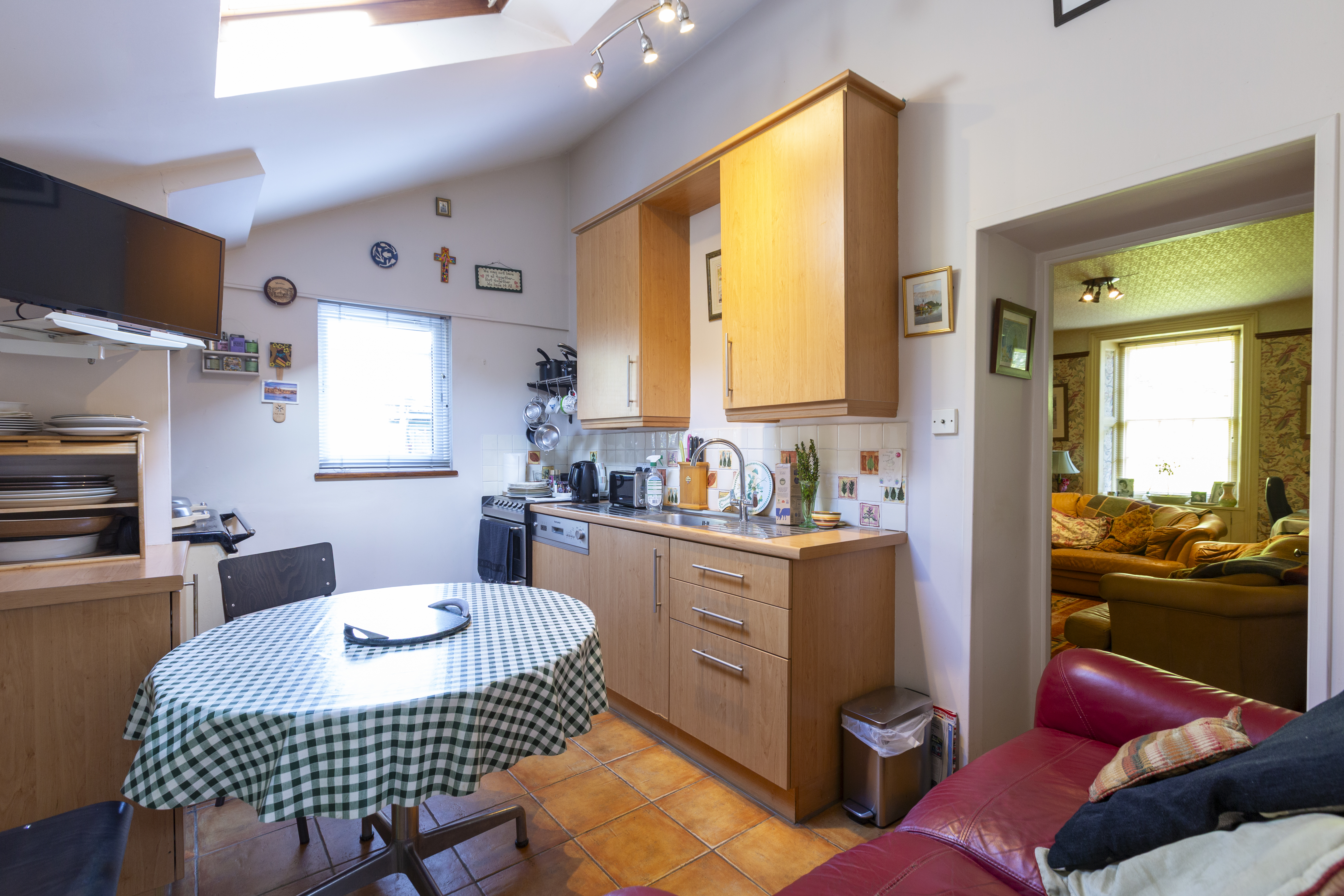 - Kitchen, dining room with open fire, lounge with woodburner , study, bedroom, dressing room, two bathrooms, and conservatory make up the ground floor