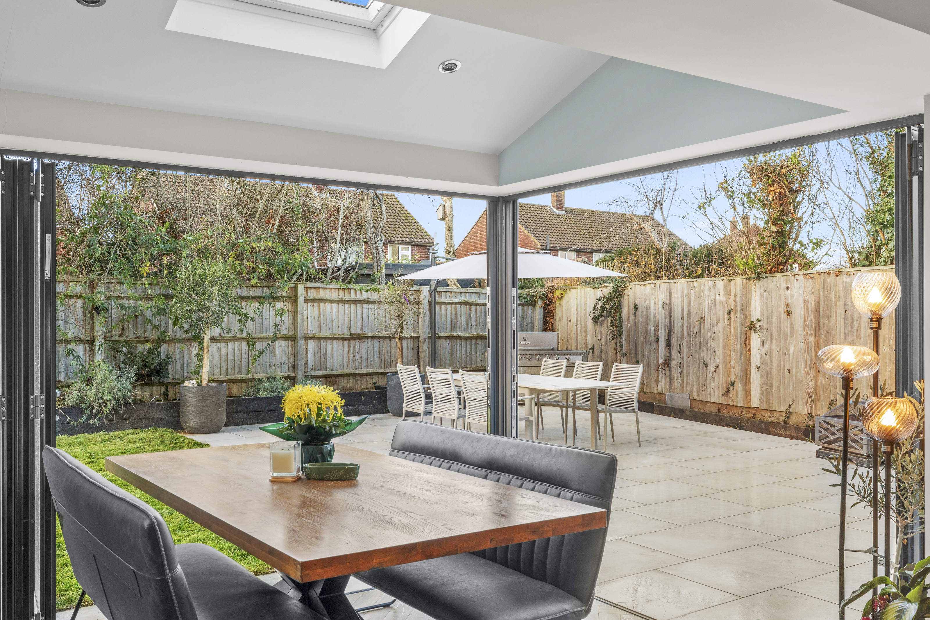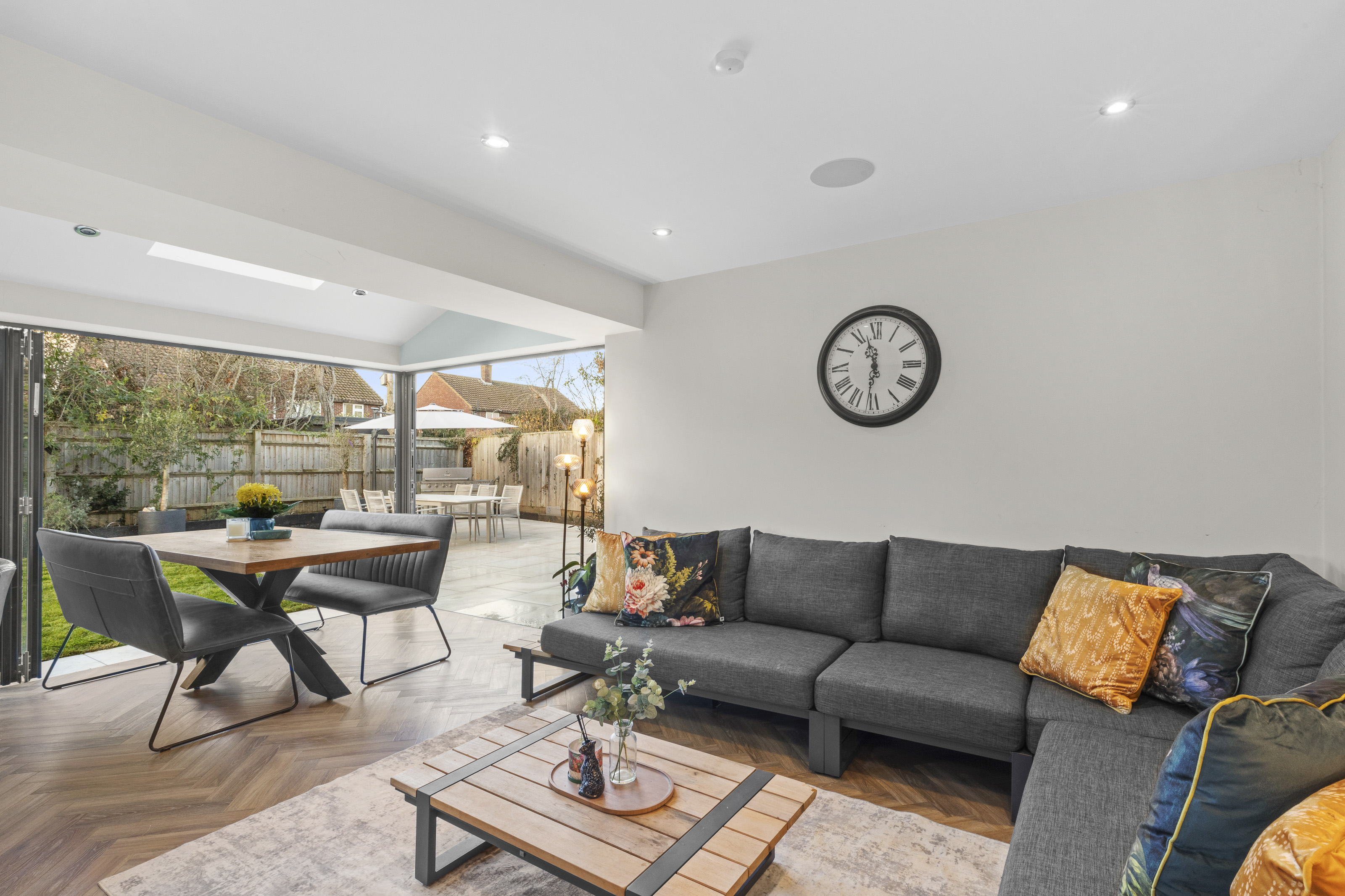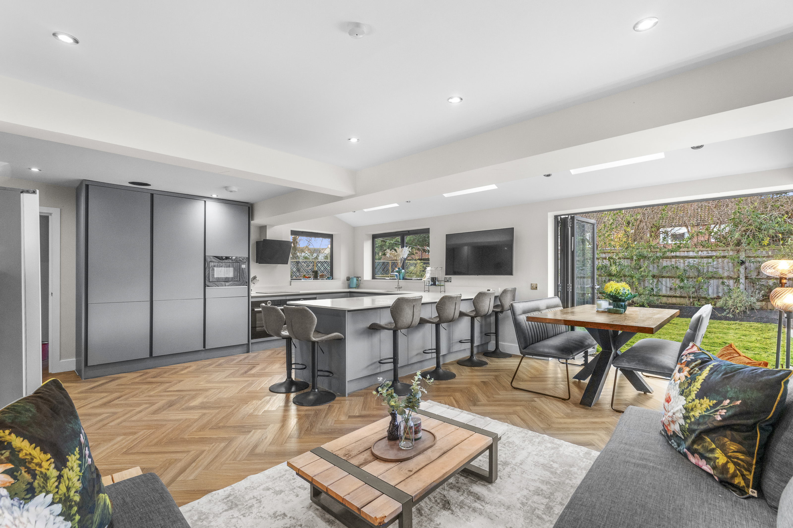 - A STUNNING KITCHEN/DINING/LIVING SPACE WHERE LIGHT FLOODS IN FROM THE DUAL BIFOLD DOORS