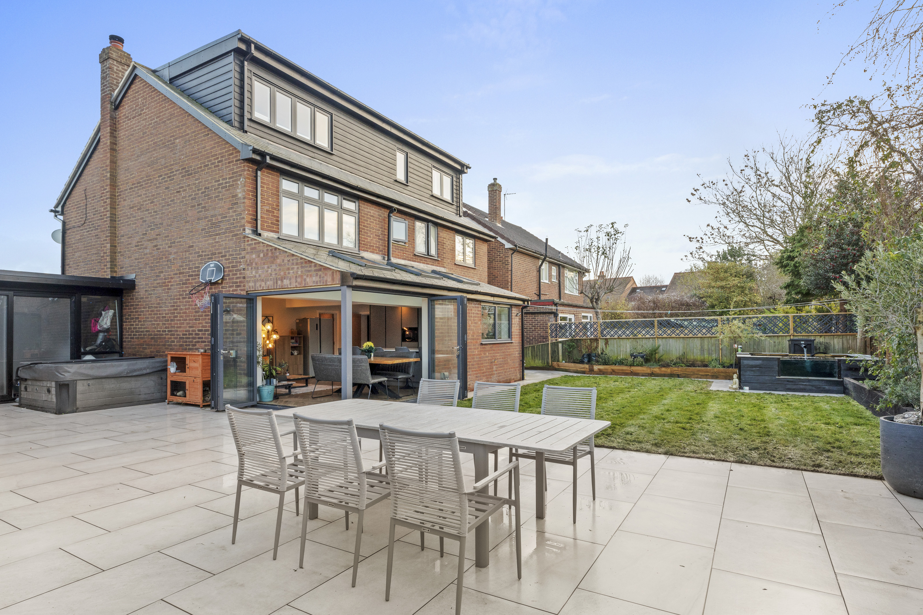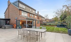 Outside, the expansive rear garden features a generous paved terrace ideal for outdoor entertaining, complemented by a delightful garden room. With ample driveway parking for multiple vehicles, this exceptional home delivers convenience alongside its impressive array of features.