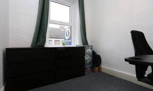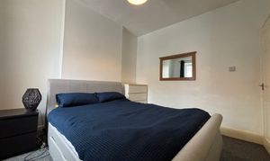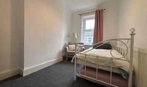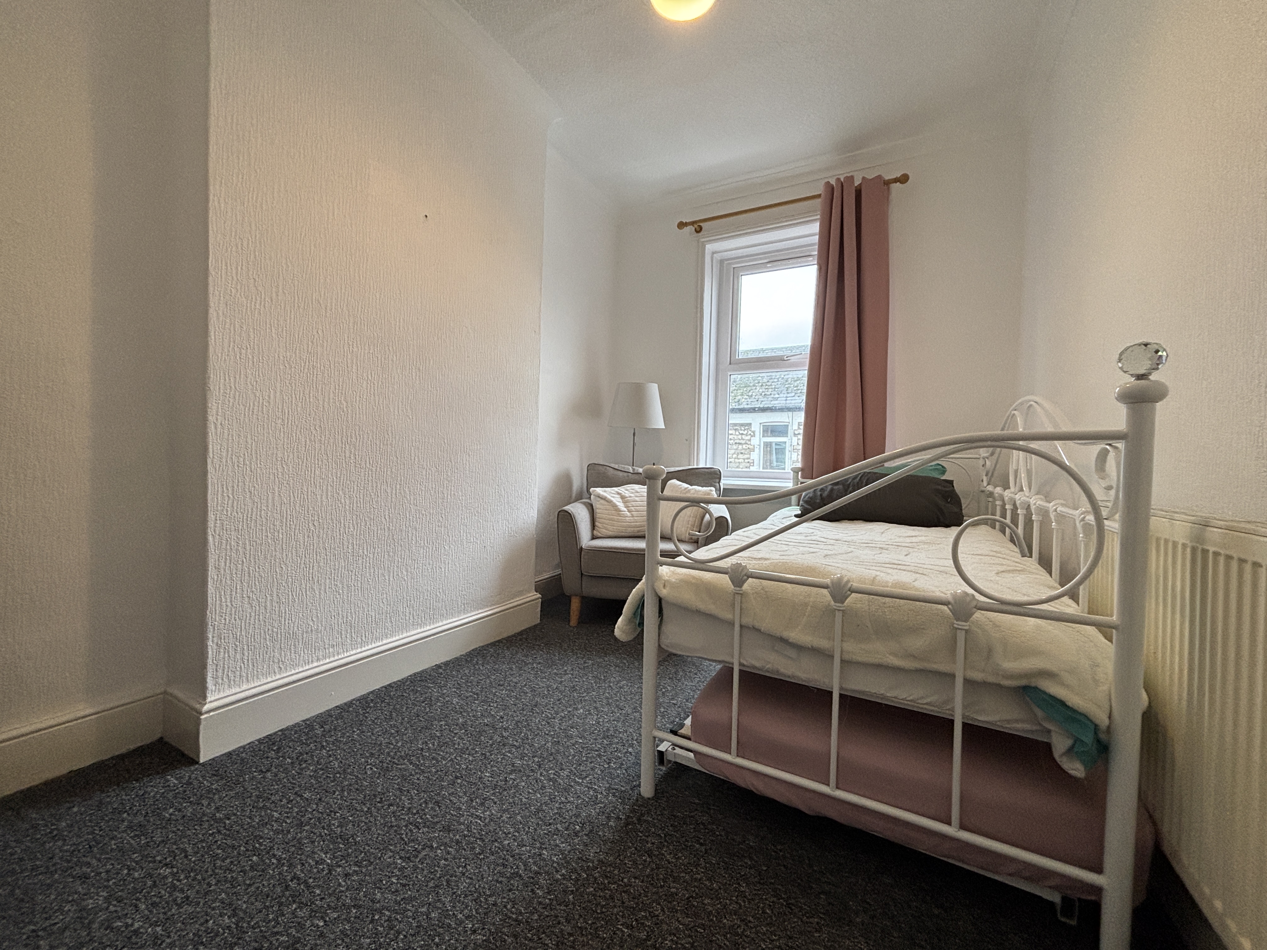 Carpeted with smooth walls and a textured ceiling. A radiator and rear aspect window. Measurements taken into the recesses either side of the chimney breast.